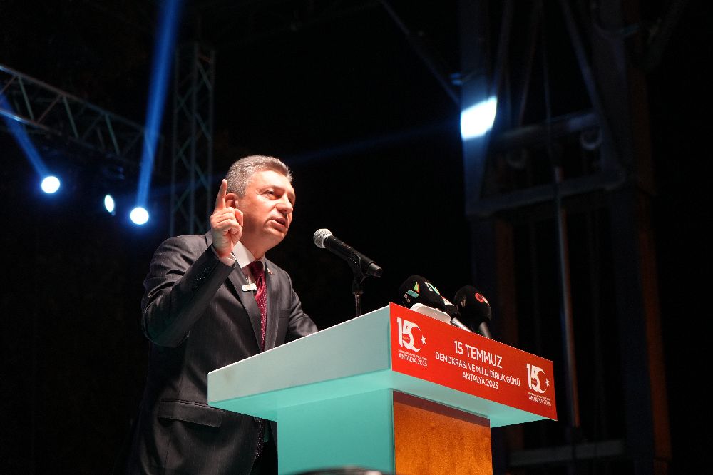 Antalya'da 15 Temmuz Demokrasi ve Milli Birlik Günü kapsamında Cumhuriyet Meydanı'nda anma programı düzenlendi. Antalya Valisi Hulusi Şahin, "Ne 9 yıl ne 90 yıl ne de 900 yıl bize bu ihaneti unutturamaz" derken, Akdeniz Üniversitesi Rektörü Prof. Dr. Özlenen Özkan ise, "Zihinlerin işgaline karşı bir direnişti. Savunma sanayisinde gösterdiğimiz milli başarıyı sağlıkta, tarımda, eğitimde de yakalamalıyız" dedi.