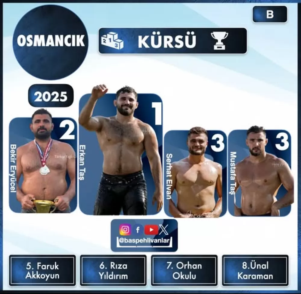Turnuvanın finalinde, gözler Erkan Taş ve Bekir Eryücel arasındaki büyük kapışmaya çevrildi. Kıyasıya geçen mücadele sonunda rakibini yenmeyi başaran Erkan Taş, Osmancık Pırlanta Pirinç Festivali Yağlı Güreşleri'nin başpehlivanı unvanını kazandı. Bu galibiyet, Erkan Taş için bu sezon kazandığı 3. başpehlivanlık unvanı oldu.