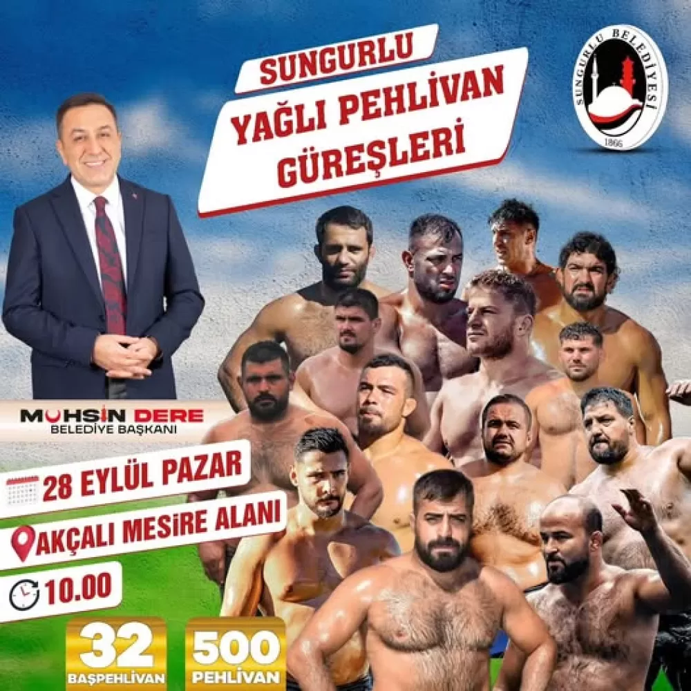 Güreşseverlerin büyük ilgi göstermesi beklenen bu önemli etkinlikte, 32 başpehlivan ve toplamda 500 pehlivan er meydanına çıkarak kıran kırana mücadele edecek. Türkiye’nin dört bir yanından gelen pehlivanlar, Sungurlu’da güreşin coşkusunu yeniden canlandıracak.