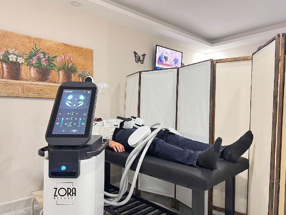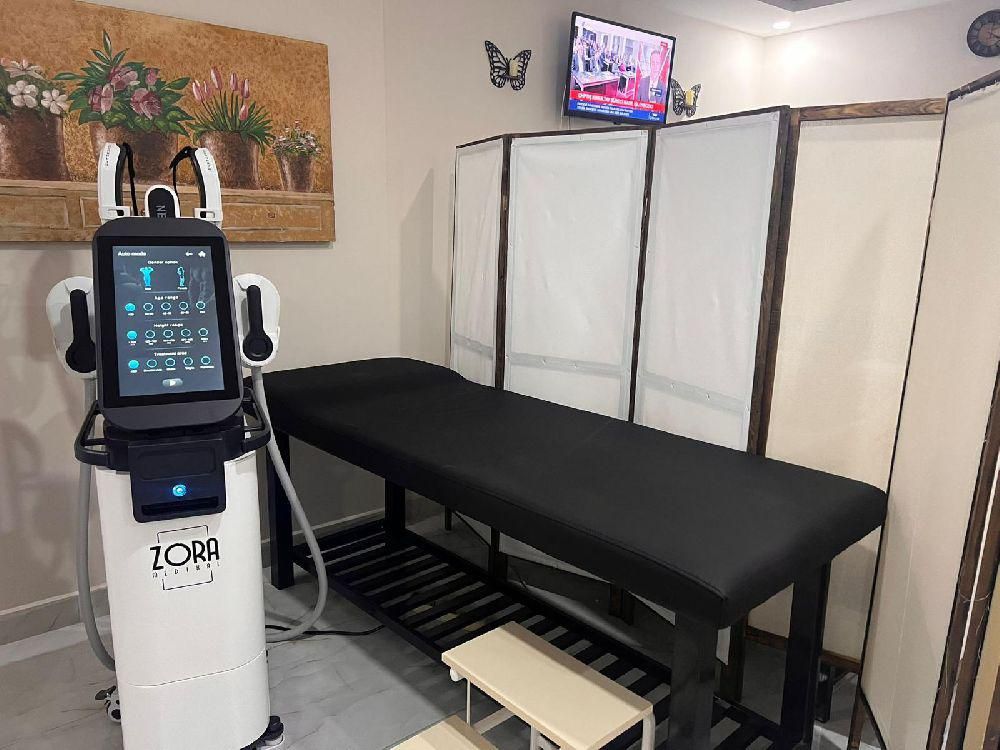EMS; odaklanmış kas geliştirme sistemi ve radyo frekans özelliği sayesinde düzenli kullanımda kas kütlesini %18’e kadar artırırken yağ oranını %21 e kadar düşürüyor. Ağrısız, acısız kişilere inaktif şekilde yoğun egzersiz yapma imkânı sunan EMS 4 başlığı sayesinde, karın, kol, bacak, basen, kalça bölgelerinde incelme ve popo kaldırma işleminde uygulanabiliyor. EMS, HI-EMT + RF sistemi ile çalışan ve vücutta 30 dakikada 30.000 mekik/squat çekmiş etkisi yaratan bir işlemdir.