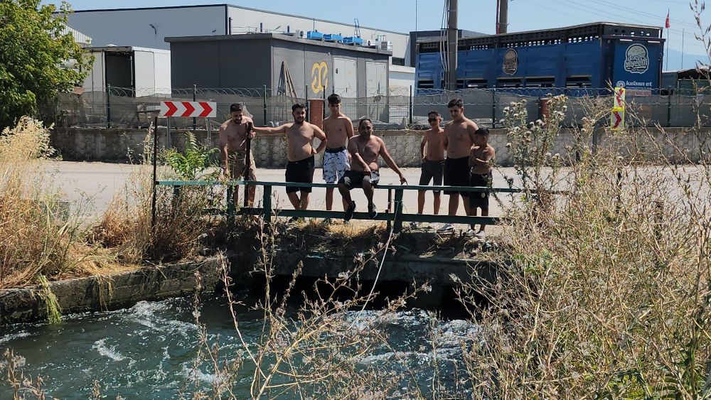 Mustafakemalpaşa'da termometreler 40 dereceyi gösterdi. Artan sıcaklık ve yüksek nemle birlikte hissedilen sıcaklığın daha da yükselmesi, vatandaşları serinlemenin alternatif yollarını aramaya itti. Denize ya da havuza ulaşma imkanı olmayan bazı gençler ise çareyi Fevzidede Mahallesi'ndeki tarımsal sulama kanalında buldu.