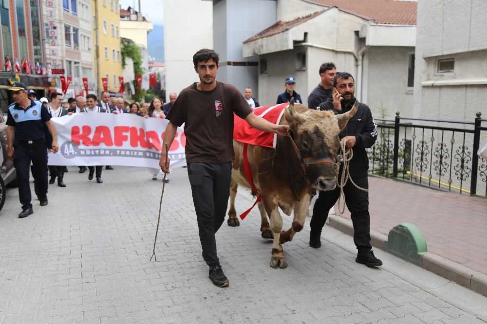 Artvin'de bu yıl 44.'sü düzenlenen Kafkasör Kültür Turizm ve Sanat Festivali kortej yürüyüşüyle başladı. Festivalin en önemli organizasyonu olan ve 200 yıllık bir geleneğe sahip boğa güreşleri nedeniyle kortejde güreş boğaları da yerini aldı. Kortej yürüyüşü, 'Ahmetağa' isimli 700 kilo ağırlığındaki boğanın üzerine örtülen Türk bayrağı eşliğinde gerçekleşti. Belediye binası önünde toplanan vatandaşlar, Valilik önündeki Atatürk Anıtı'na çelenk bıraktı. Ardından saygı duruşunda bulunularak İstiklal Marşı okundu.