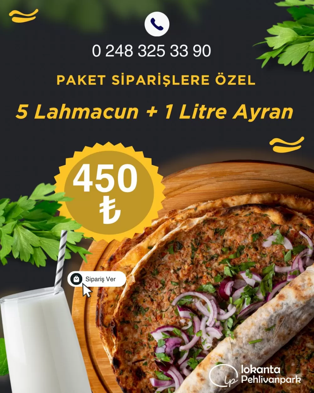 Bucak’ın sevilen işletmelerinden Lokanta PehlivanPark, hem lezzeti hem de bütçeyi düşünen müşterileri için dikkat çekici bir kampanya duyurdu. Kampanya kapsamında 5 lahmacun alanlara, yanında 1 litre ayran ücretsiz olarak sunuluyor.