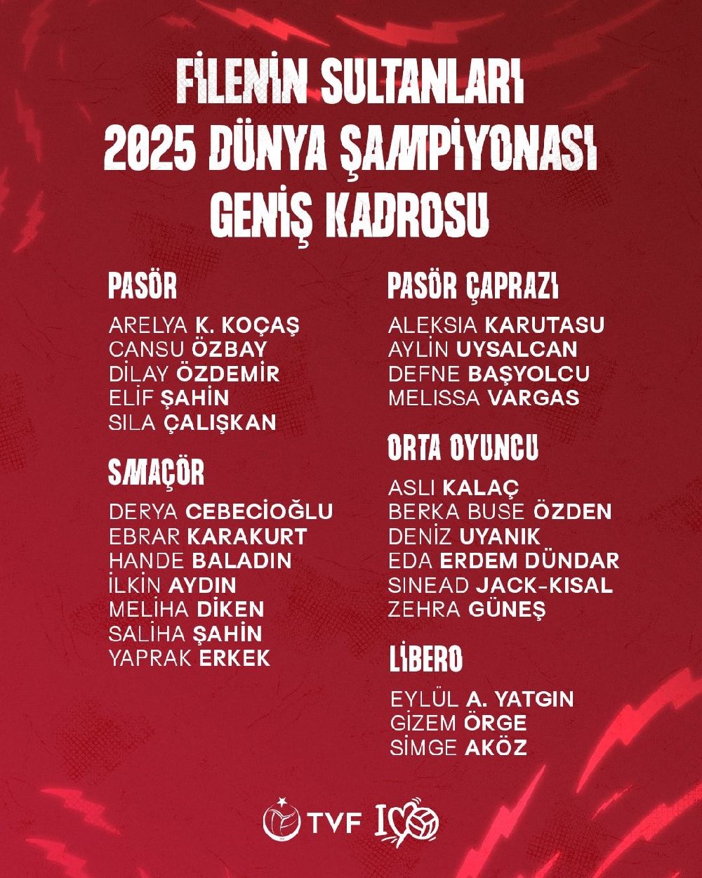 FIVB Kadınlar Dünya Voleybol Şampiyonası'nda mücadele edecek A Milli Kadın Voleybol Takımı'nın geniş sporcu kadrosu açıklandı.