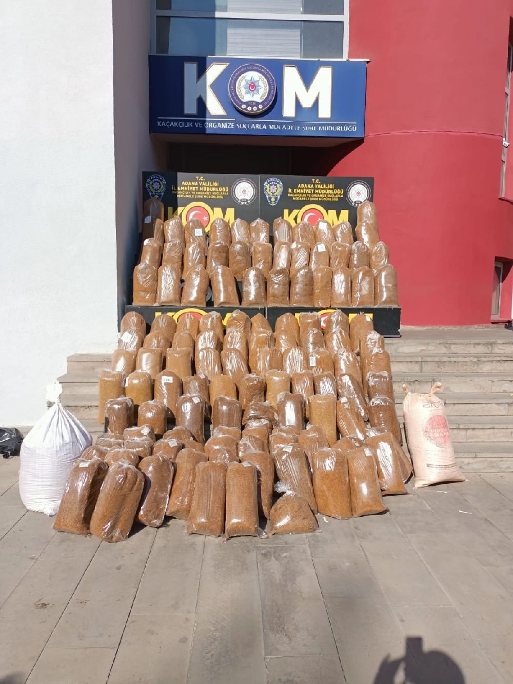 Adana'da kaçakçılıkla mücadele kapsamında yapılan operasyonda, 1 ton 250 kilo kıyılmış kaçak tütün ile 16 bin 750 adet makaron bandrolü ele geçirildi, 3 şüpheli gözaltına alındı.