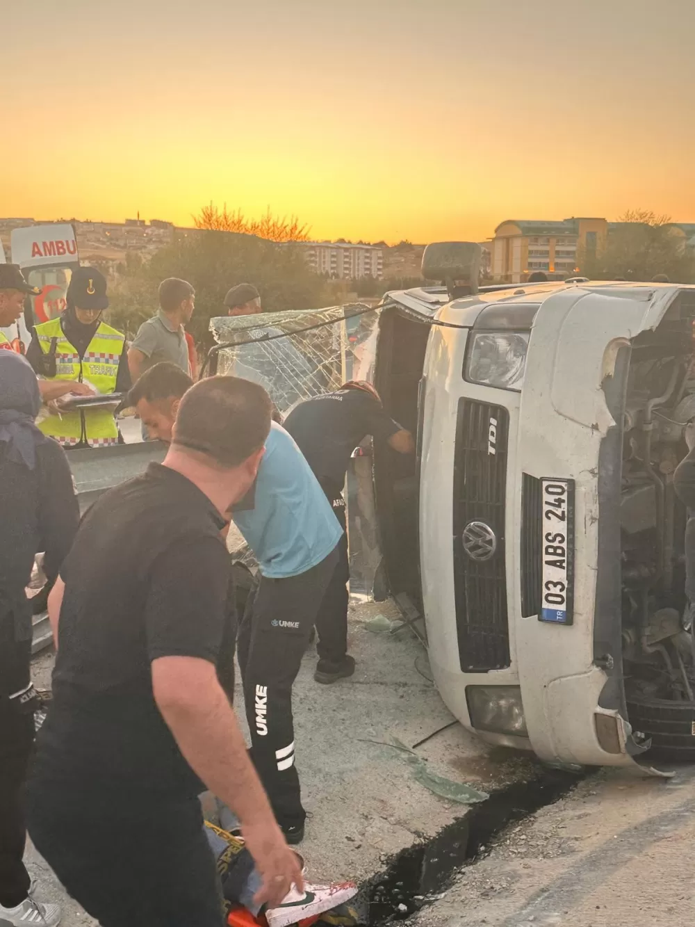 Kaza, İhsaniye ilçesine bağlı Gazlıgöl beldesi çıkışında meydana geldi. Edinilen bilgilere göre, 03 ABS 240 plakalı midibüse henüz belirlenemeyen bir sebepten ötürü 03 ABZ 983 plakalı otomobil çarptı. Çarpışma sonucu kontrolden çıkan minibüs yol kenarındaki refüje devrildi. Kazanın ardından çevredekilerin haber vermesi üzerine bölgeye çok sayıda jandarma ve Sağlık ekibi sevk edildi. İhbar üzerine olay yerine gelen ekipler yaralıları ambulanslarla hastanelere kaldırdı. 10 kişinin yaralandığı kazada 3 kişinin durumunun ciddiyetini koruduğu öğrenildi.