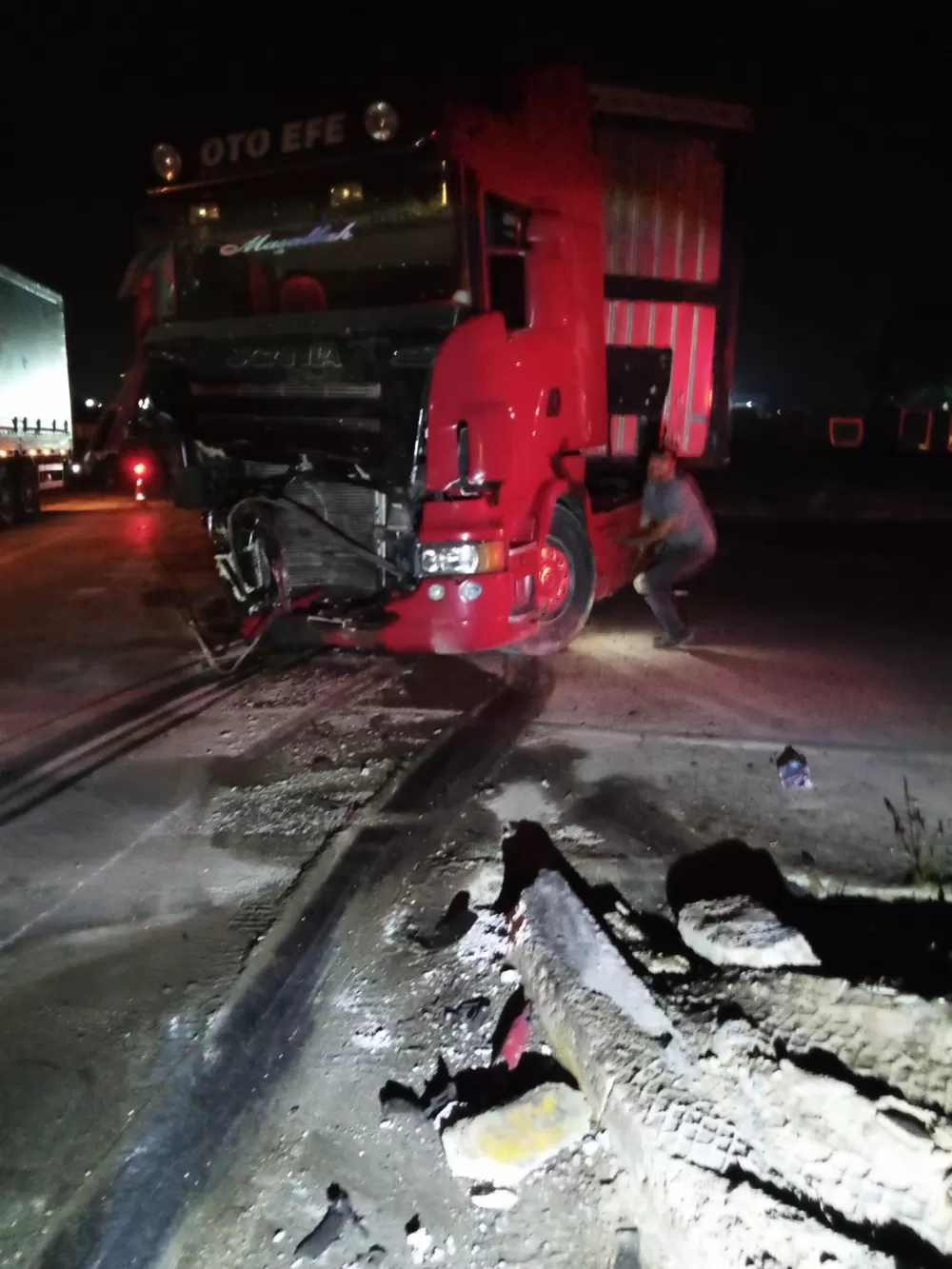 Olay, dün gece Afyonkarahisar-Ankara karayolu üzerinde meydana geldi. Edinilen bilgilere göre, 08 K 3009 plakalı tır ile plakası öğrenilemeyen bir başka tır henüz bilinmeyen sebeple çarpıştı. Yaşanan çarpışma sonucunda 08 K 3009 plakalı tır yan yattı. Korkutan kaza maddi hasarla atlatıldı. Kazada kimsenin yara almaması teselli kaynağı oldu.