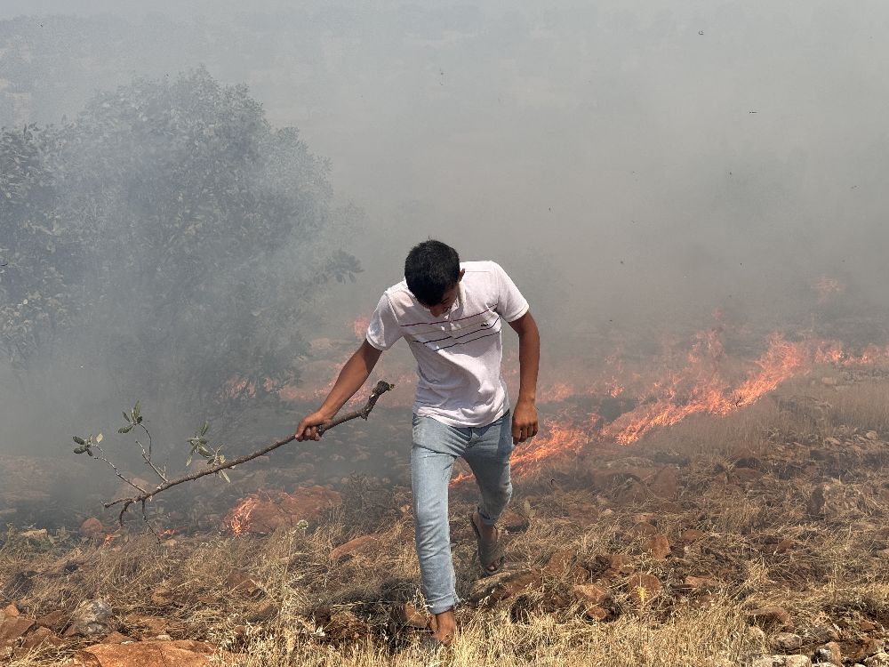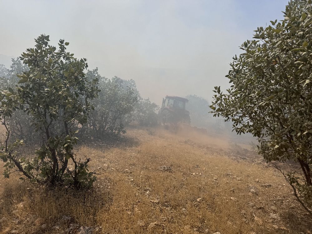 Mardin’in Mazıdağı ilçesinde ağaçlık alanda çıkan yangında çiftçilerin amansız mücadelesi takdir topladı.