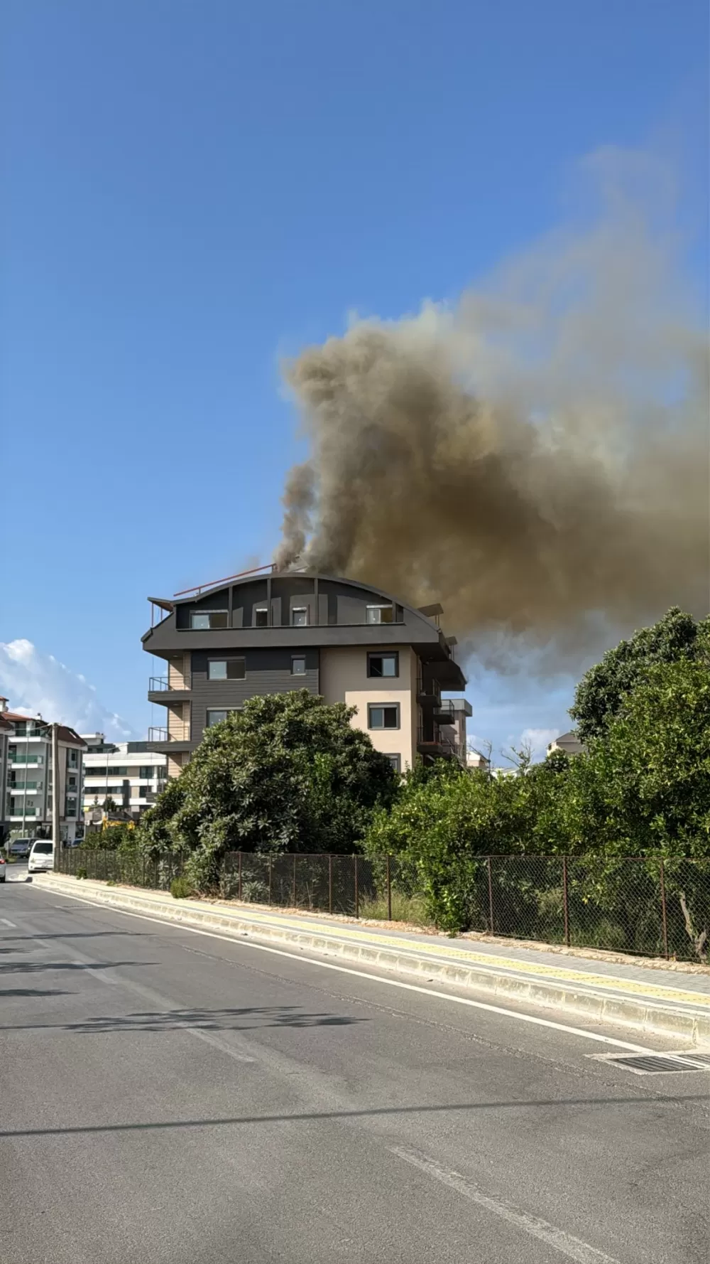 Yangın, 10:30 sıralarında Alanya'nın Oba Mahallesi Hayri Doğan Caddesi üzerinde bulunan henüz inşaatı tamamlanmayan 4 katlı binanın çatı katında meydana geldi. Edinilen bilgilere göre, çatı katında ustalar çalıştığı esnada henüz belirlenemeyen nedenden dolayı dumanlar yükselmeye başladı. Dumanı gören çevredeki vatandaşlar durumu 112 Acil Çağrı Merkezine bildirdi. Olay yerine gelen itfaiye ekipleri yangını büyümeden kontrol altına aldı.