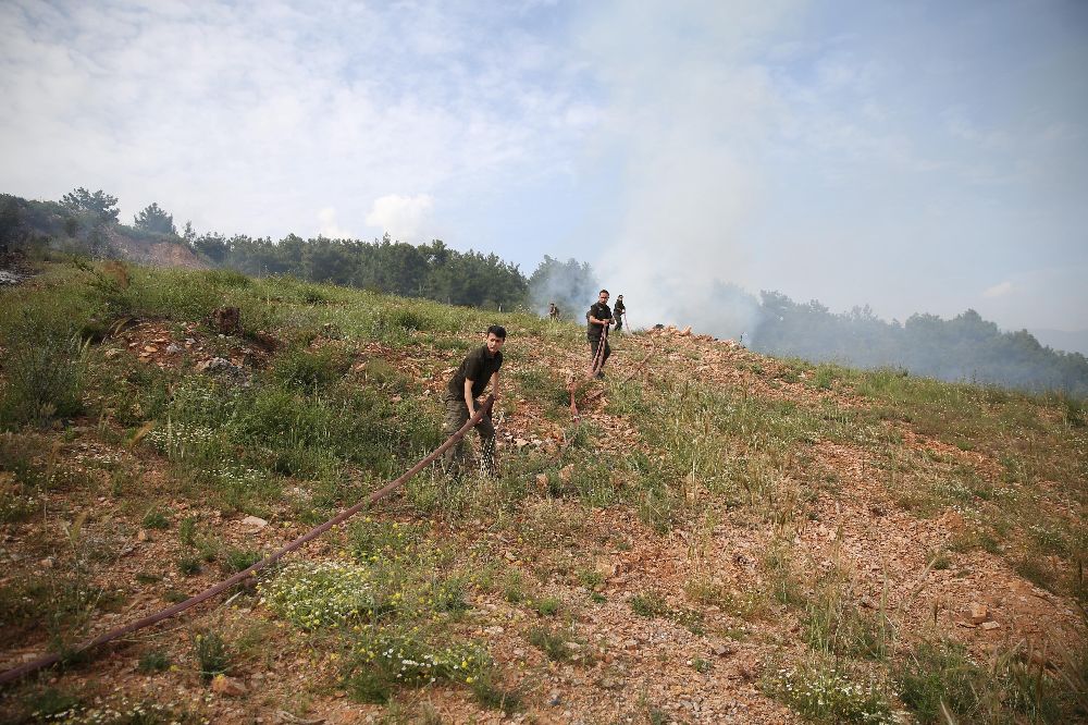 Antalya'nın Alanya ilçesinde makilik alanda çıkan yangın, ekiplerin hızlı müdahalesi sayesinde ormanlık alana sıçramadan kontrol altına alındı.