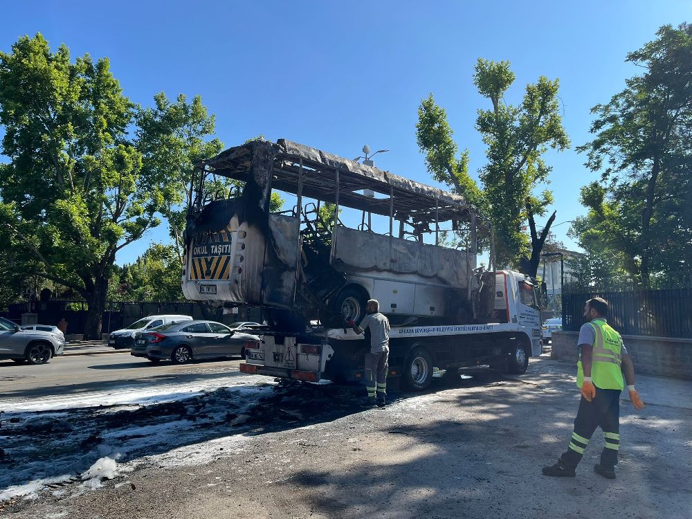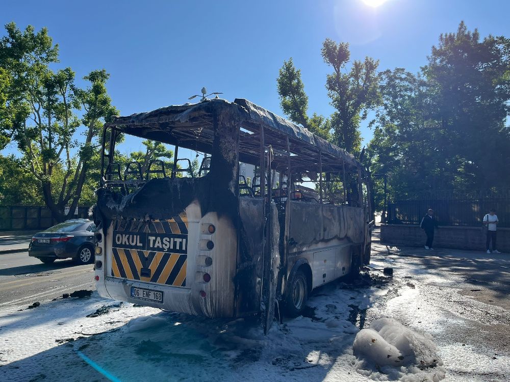 Ankara’da yangın çıkan minibüs kullanılamaz hale geldi.