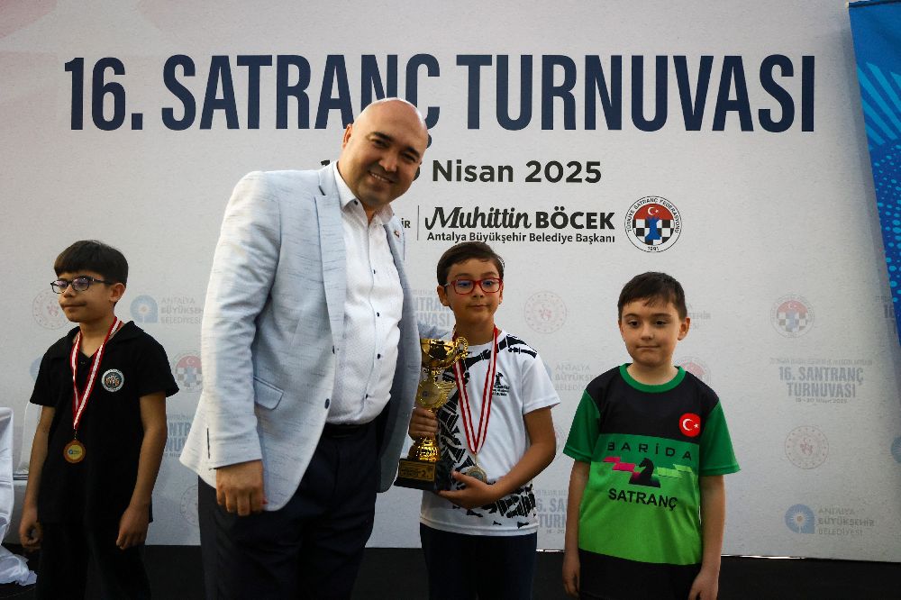 Antalya Büyükşehir Belediyesi tarafından 23 Nisan Ulusal Egemenlik ve Çocuk Bayramı kapsamında düzenlenen 16. Satranç Turnuvası sona erdi. 7-12 yaş grubu öğrencilerin mücadele ettiği satranç turnuvasının şampiyonları kupalarını ve madalyalarını aldı.