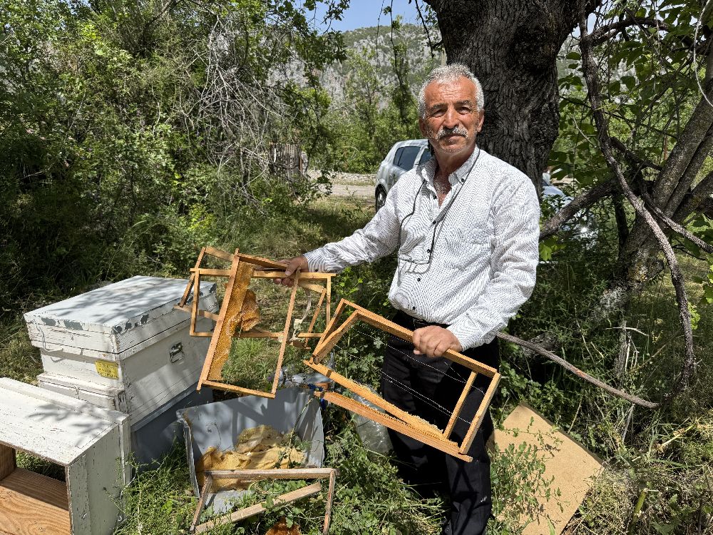 "Ayılarla başımız dertte" diyen Şanlı, "Evime 50 metre mesafede yeniden arılara ayı geldi. Kovanlarımızın 2 tanesini parçaladı. En sonunda akülü elektrikli telle çevirdik. Geçen yıl arıların etrafını çevirmemiştik. Arıları ayılara yedirdik. 74 kovanımız telef oldu. Bu yıl önlemini aldık. Bakalım nasıl olur. Tabi ki arıcılık bir şans işidir. Geçen yıl ayılar hiçbir şey bırakmadı. Sadece 7 kovan arı kaldı. Bu yıl yeniden arı aldık. 35 kovana çıkardık. Bu sezon inşallah yine 50 kovanın üzerine çıkarım" dedi.