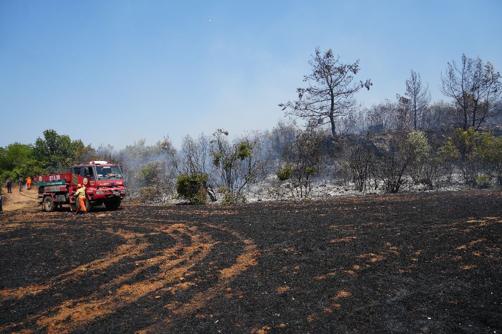 Yangın, geniş alana yayılmadan kontrol altına alınırken, itfaiye ve Orman Bölge Müdürlüğü ekipleri bölgede soğutma çalışmalarını sürdürüyor.