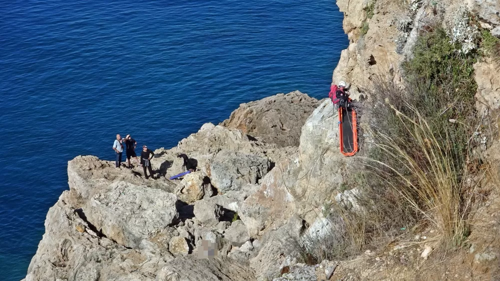 Antalya’da dört çocuk babası 44 yaşındaki adam falezlerdeki kayalık alanda ölü bulundu. Ölüm haberini duyan kardeşinin "abim ölmüş" feryatları yürekleri yakarken, cenaze 25 metre yükseklikten 2 saatlik operasyonla alındı. Operasyonu yüzerek açıldıkları denizden izleyenler ise deniz polisi ve sahil güvenlik ekiplerince uyarıldı.