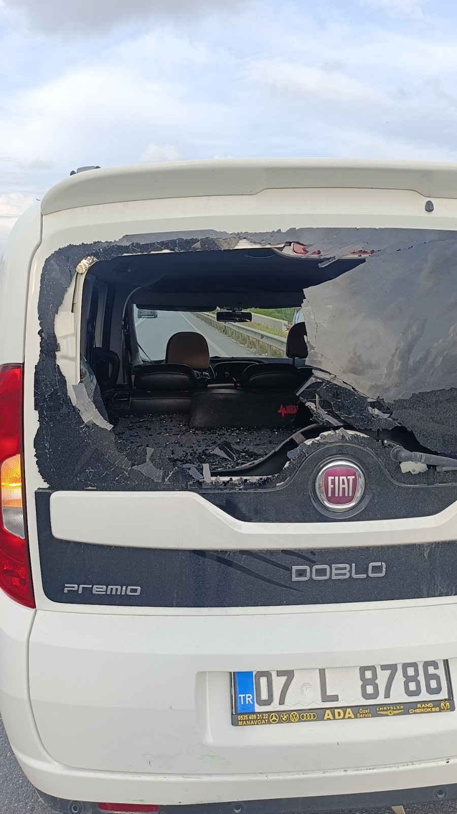 Antalya'nın Manavgat ilçesinde motosikletin hafif ticari araca arkadan çarptığı kazada, çarpmanın etkisiyle aracın arka camından içeri giren motosiklet sürücüsü, başındaki kask sayesinde ölümden döndü.