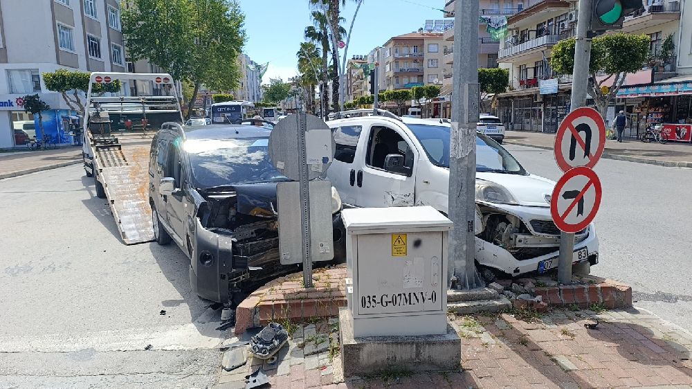 Antalya'nın Manavgat ilçesinde kırmızı ışık ihlali sonucu 2 hafif ticari aracın çarpıştığı trafik kazasında 1 kişi yaralandı. Kaza anı güvenlik kameralarına saniye saniyesine yansıdı.