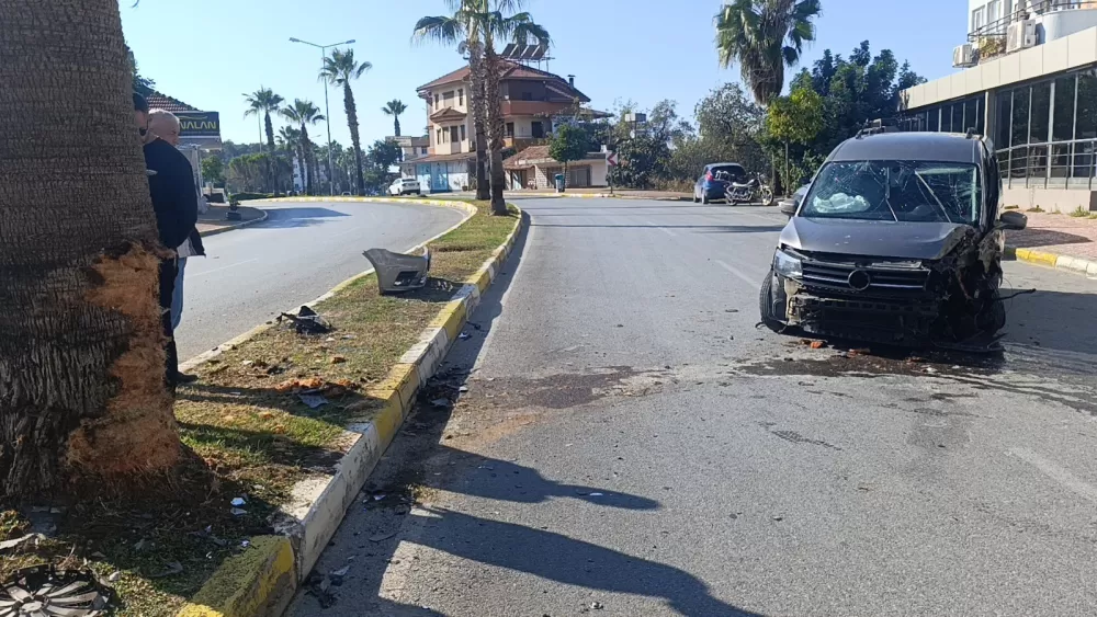 Antalya’nın Manavgat ilçesinde hafif ticari araç palmiye ağacına çarpması sonucu sürücü yaralandı. Kaza anı güvenlik kamerasına yansıdı.
