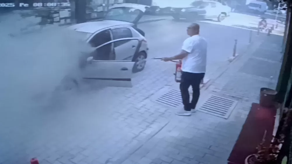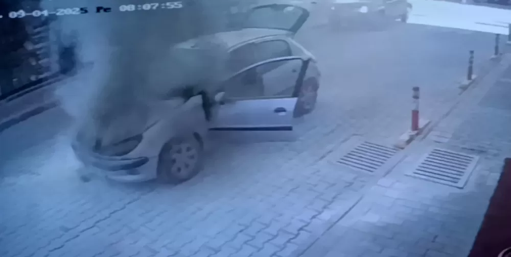 Güvenlik kamerasına saniye saniyesine yansıyan görüntülerde Yukarı Hisar Mahallesi Tugayoğlu Caddesinde seyir halindeyken 7001 sokağa dönen Veli İspirlioğlu’nun kullandığı 07 LHV 26 plakalı Peugeot marka otomobilin alt kısmından alevler çıkmaya başladı. Kısa sürede alevler motor bölümüne ulaşırken araçtan inen sürücü, motor kaputunu açmak istese de sıcak olmasından dolayı açamadı.