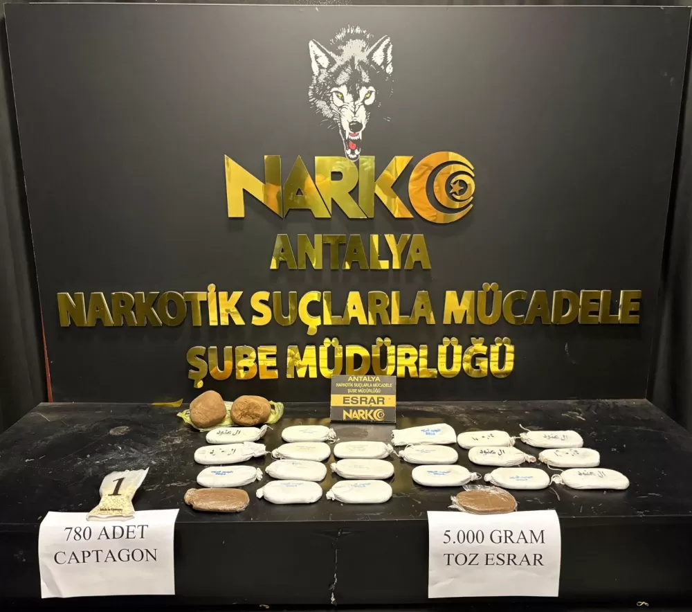 Antalya İl Emniyet Müdürlüğü Narkotik Suçlarla Mücadele Şube Müdürlüğü koordinesinde, il genelinde son 1 haftada uyuşturucu suçlarına yönelik operasyonlar gerçekleştirildi. Yapılan çalışmalarda; 15 kilogram esrar, 780 adet captagon hap, 189 adet sentetik ecza, 144 gram kokain, 69 adet ve yaklaşık 14 bin 838 kullanımlık sentetik kannabinoid (A4), 35 gram metamfetamin, 11 gram eroin, 2 hassas terazi, 5 adet ateşli silah, 13 adet fişek, suçtan elde edildiği değerlendirilen bir miktar döviz ve Türk Lirası ele geçirildi. Ayrıca yapılan operasyonlar kapsamında; ''uyuşturucu veya uyarıcı madde ticareti yapmak ve sağlamak'' suçundan 22 olayda 28 şüpheli yakalandı, 19'u tutuklandı. ''Kullanmak için uyuşturucu veya uyarıcı madde satın almak, kabul etmek ve bulundurmak'' suçundan ise 140 olayda 142 kişi gözaltına alındı. Uyuşturucu suçlarından aranan 21 şahıs yakalanarak, 14'ü cezaevine teslim edildi. Aynı zamanda, uyuşturucuyla mücadelede önleyici faaliyetler kapsamında, 3 bin 387 anne ve anne adayına eğitim verilerek farkındalık çalışmaları gerçekleştirildi.