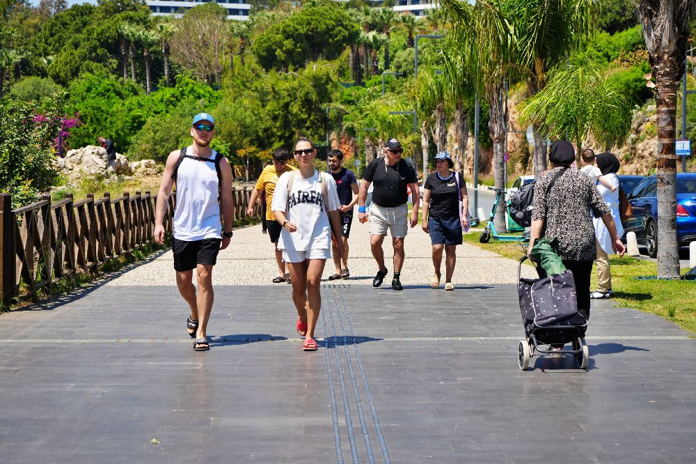Sahilde yürüyüş yapanlar, manzara noktalarında fotoğraf çektiren turist grupları ve sahil şeridindeki sosyal alanlarda vakit geçiren vatandaşlar, Antalya'nın hem deniz hem doğa turizmindeki cazibesini bir kez daha ortaya koydu.
