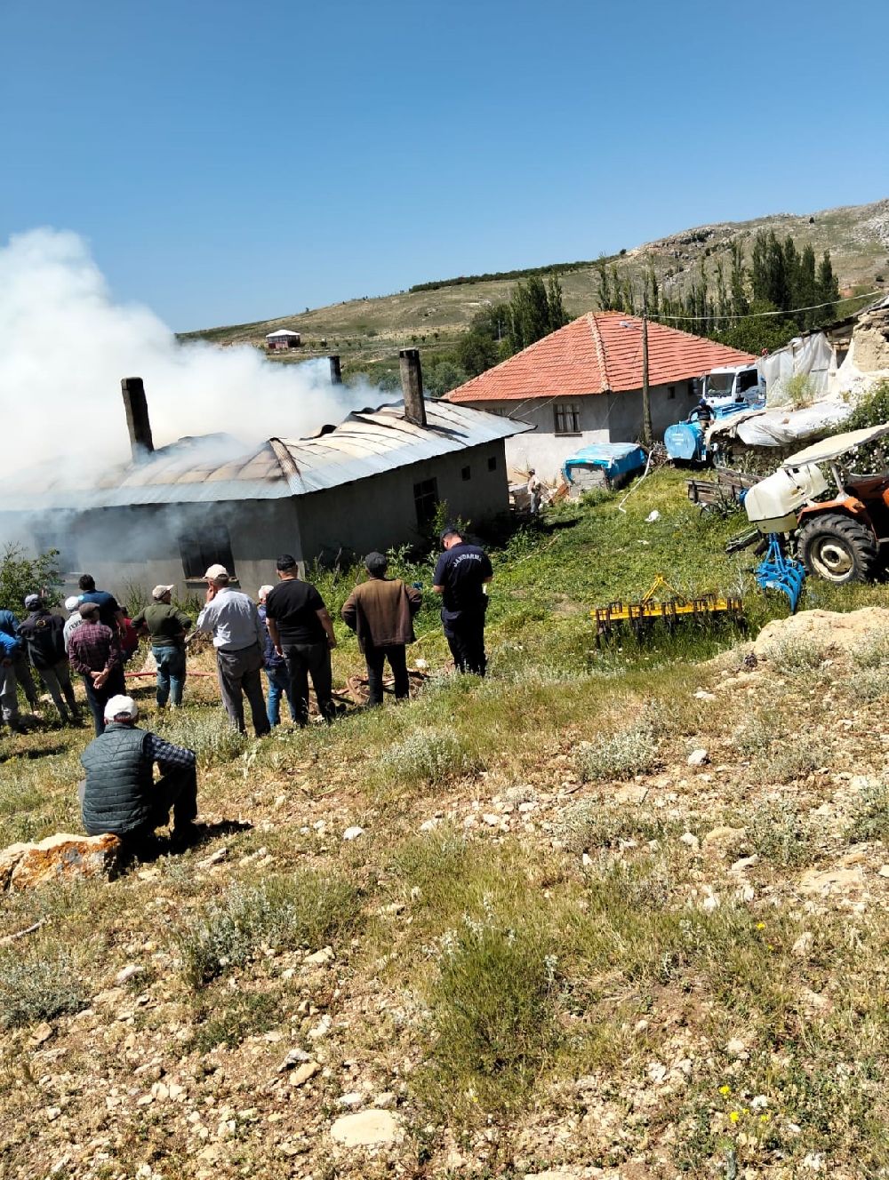Yangın sonrası Ahmet Kuş’a ait ev kullanılamaz hale gelirken ahırda buluna 2 adet küçükbaş kurbanlık hayvan telef oldu.