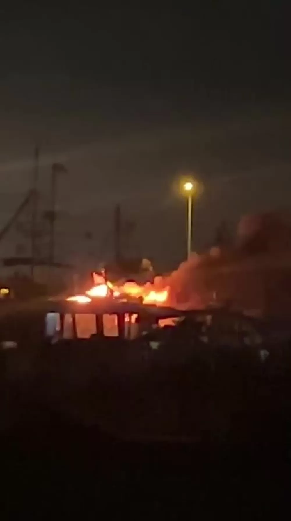 Antalya Balıkçı Barınağı'nda şiddetli yağış sırasında düşen yıldırım nedeniyle balıkçı barınağında çıkan yangında 3 tekne küle döndü.