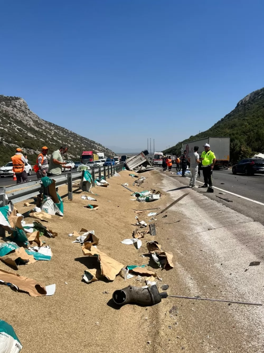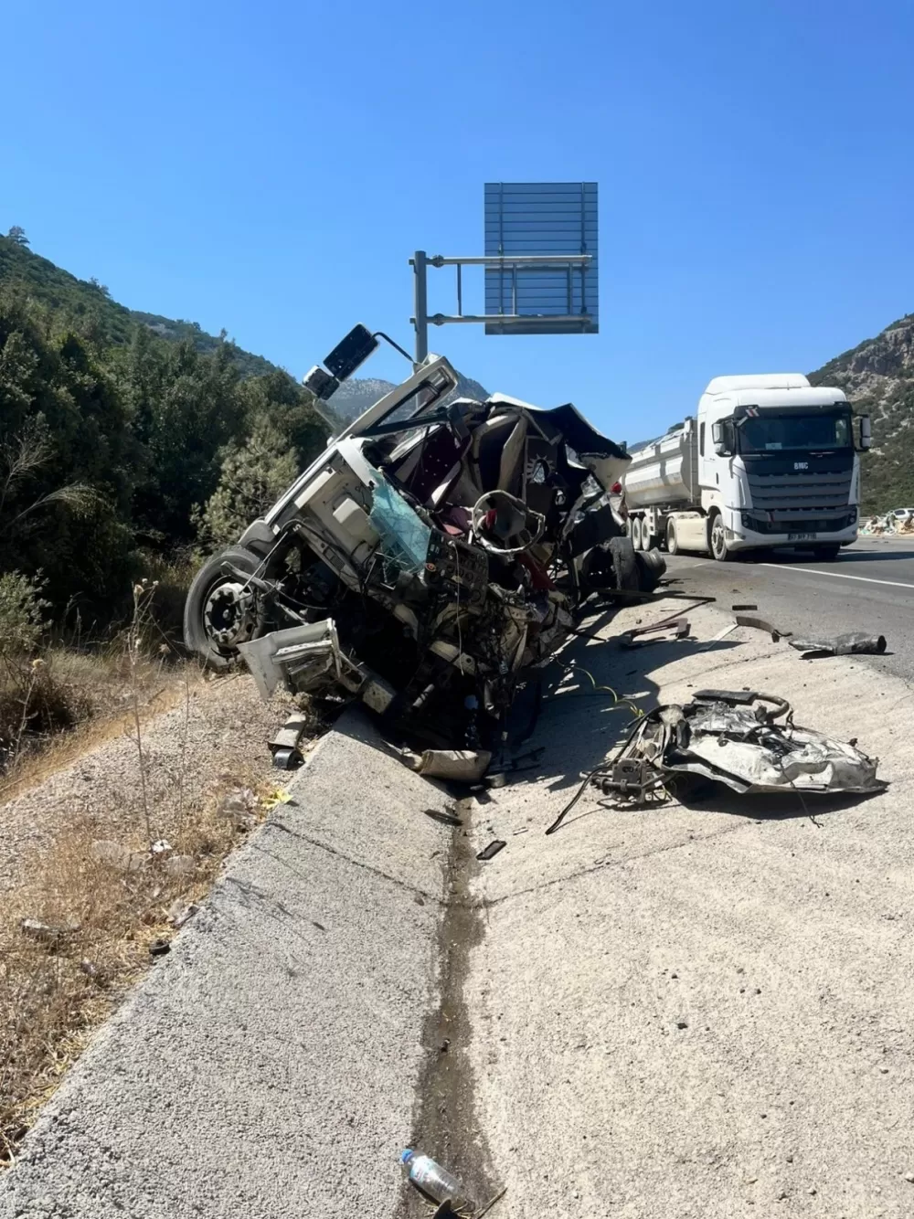 İhbarla verilen adrese gelen ekipler araç içerisinde bulunan 25 yaşındaki sürücünün hayatını kaybettiği belirledi. Kaza nedeniyle yol kenarında bulunan bariyerin yerinden koptuğu görüldü. Tıra ait parçalar çevreye savrulurken, trafik akışı uzun süre tek şeritten sağlandı. Yapılan savcılık incelemesinin ardından kazada hayatını kaybeden Buğrahan Türker'in cansız bedeni Antalya Adli Tıp Kurumu morguna kaldırıldı.