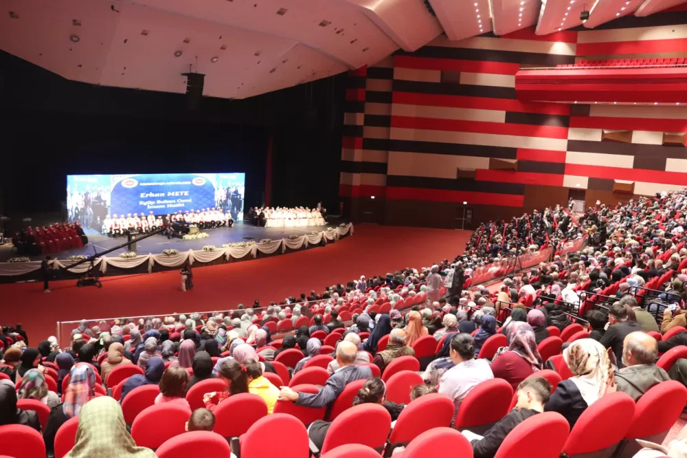 Yoğun katılımın olduğu program, İstiklâl Marşı’nın okunması, Kur’an-ı Kerim tilaveti ve hafız öğrencilerin salâvat-ı şerifeler eşliğinde salona girişiyle başladı.