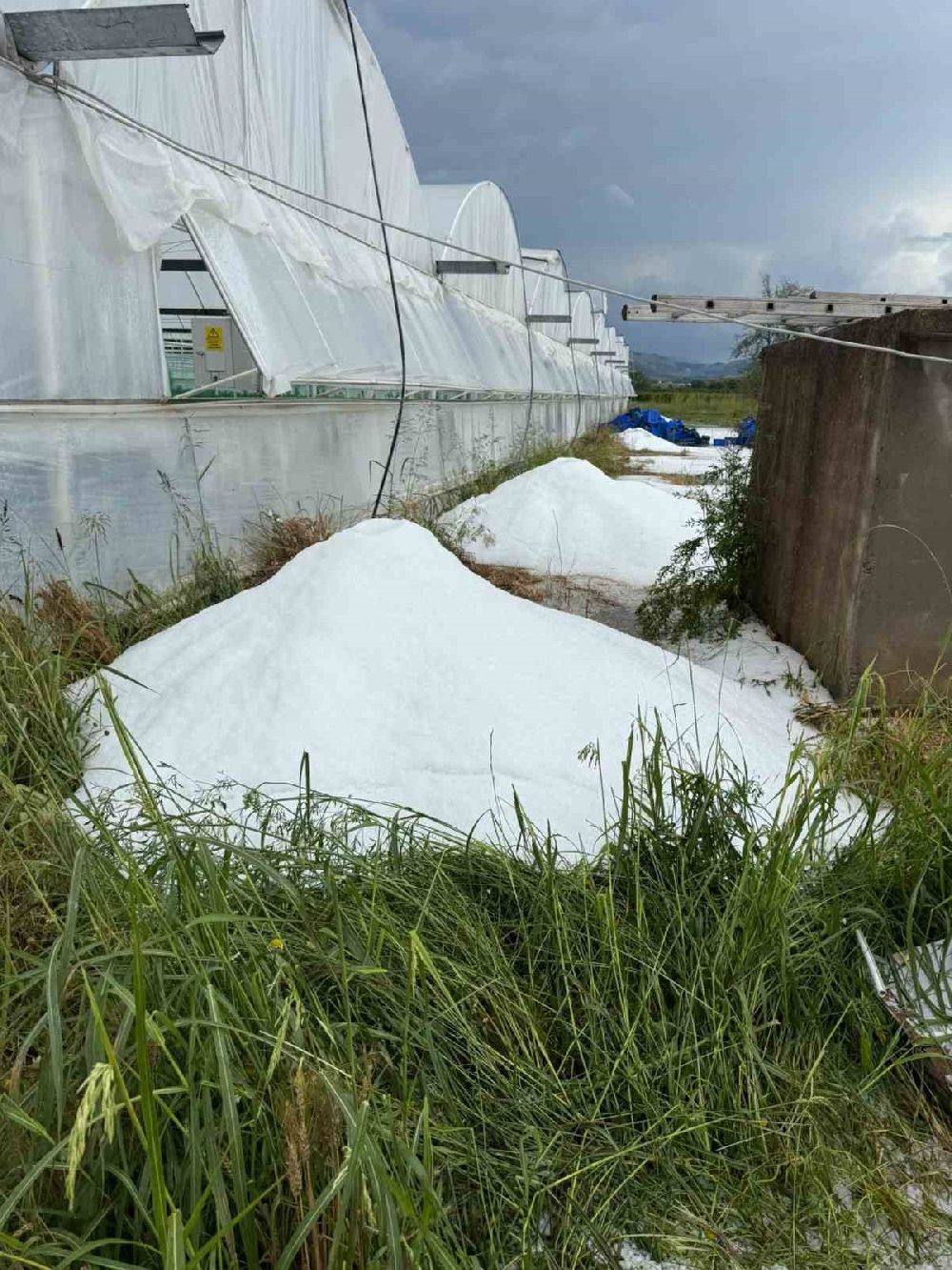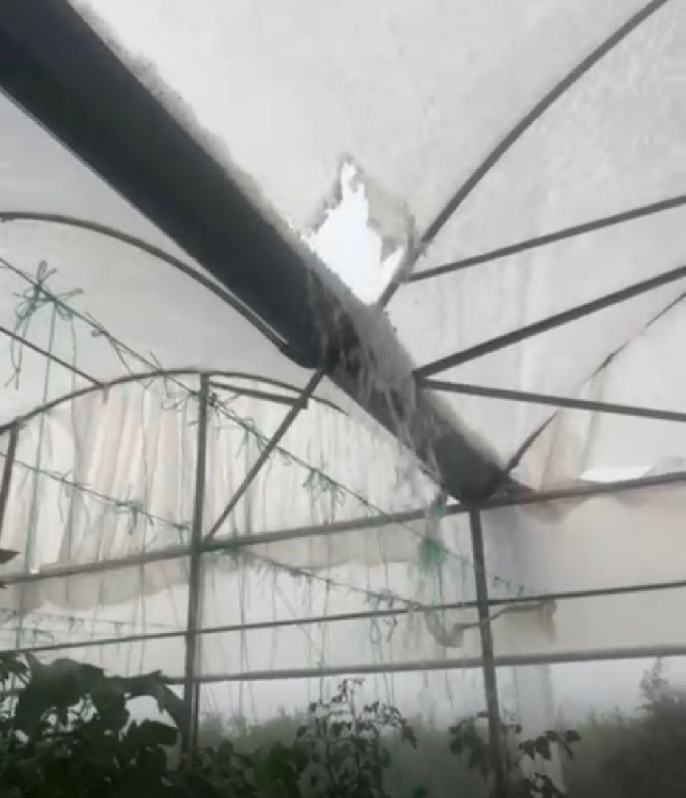 Çöken seralarda yetiştirilen domates ve biberler zarar görürken, açık alanda ekili karpuz tarlalarının da doludan olumsuz etkilendiği bildirildi.