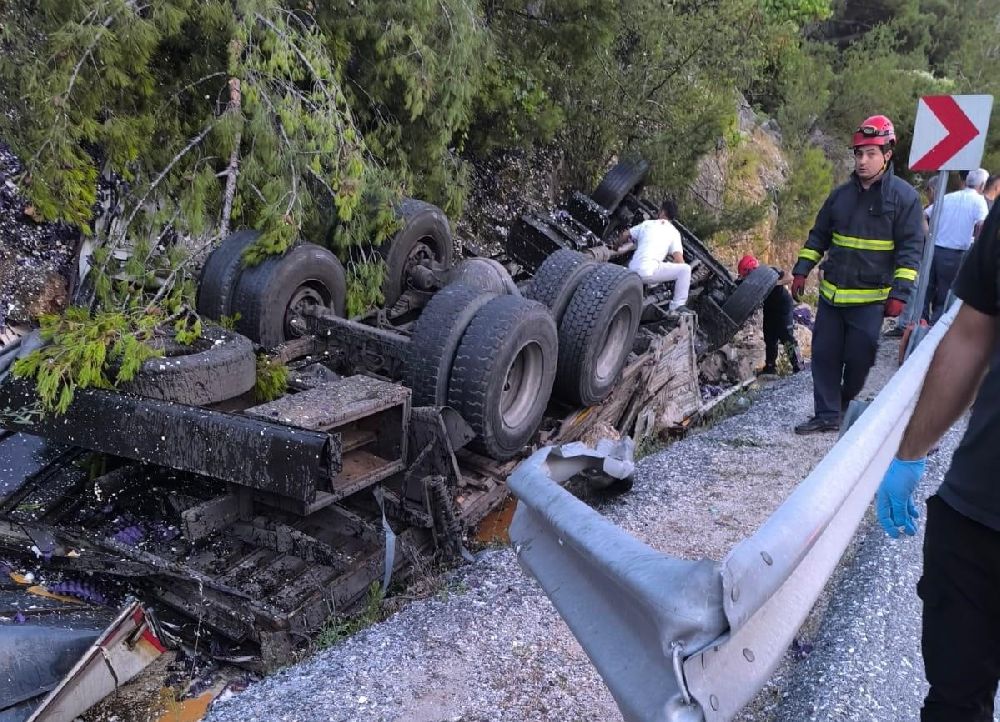 Antalya’da kontrolden çıkan yumurta yüklü kamyonun devrilmesi sonucu meydana gelen trafik kazasında aracın altında kalan sürücü hayatını kaybetti.