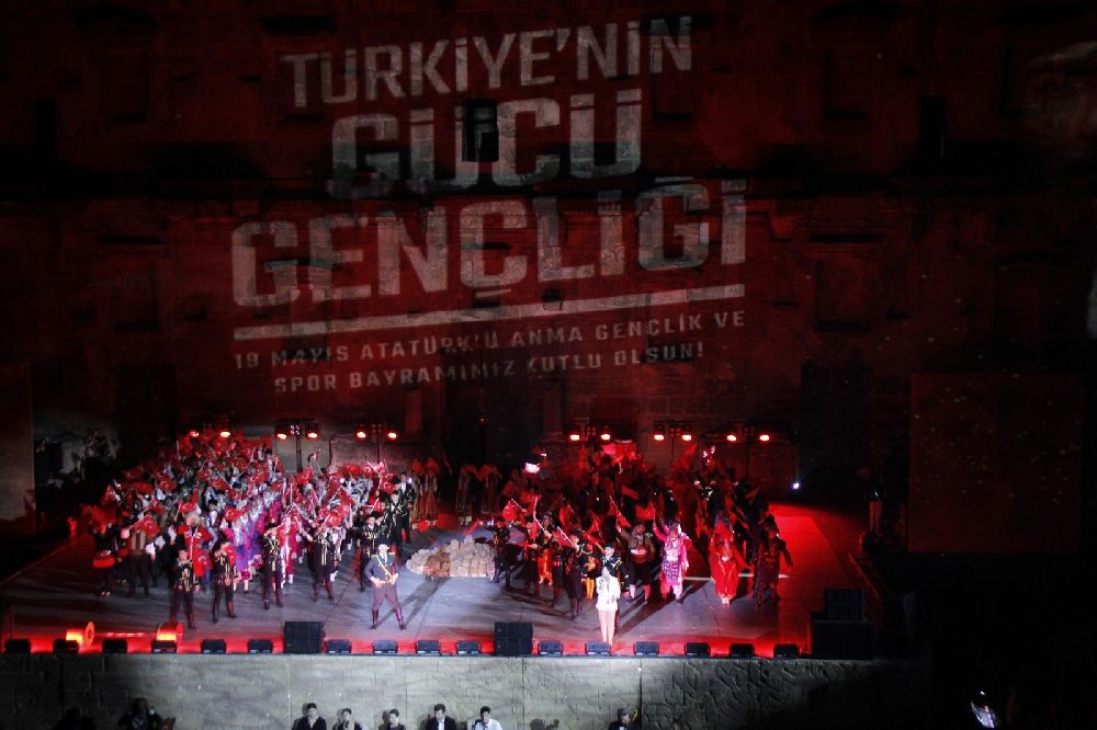 Serik ilçesindeki Aspendos Antik Tiyatrosu'nda, ‘Türkiye'nin Gücü Gençliği2 mottosuyla Gençlik Haftası ve 19 Mayıs Atatürk'ü Anma, Gençlik ve Spor Bayramı temalı organizasyon düzenlendi. Saygı duruşu ve istiklal marşının okunması ve Gençlik marşının söylenmesi ile başlayan gösteride dünün mücadele, bugünün spor kahramanları dans koreografisiyle anlatıldı. Çesitli spor branşlarının da aktarıldığı gösteriye Türkiye'nin birçok şehrinden gelen 350 kişilik ekip katildi.