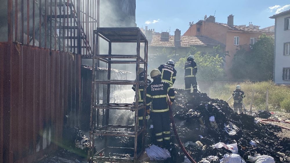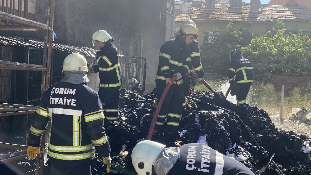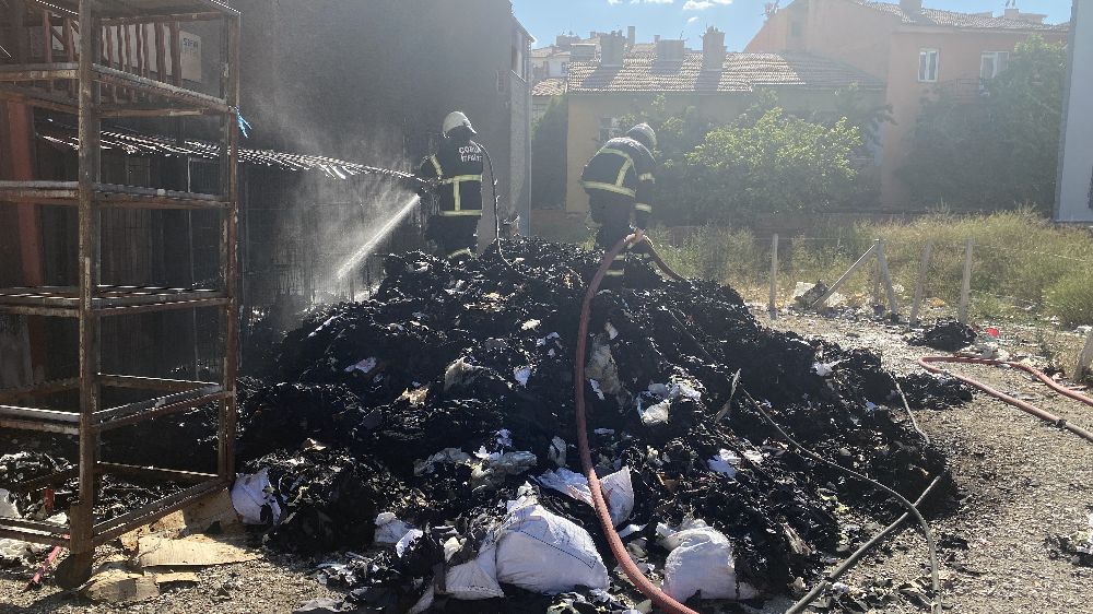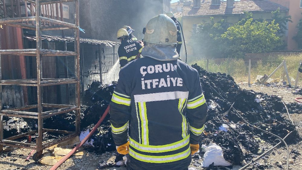 Çorum'da tekstil atıklarının istiflendiği arsada çıkan yangın, itfaiye ekipleri tarafından söndürüldü.