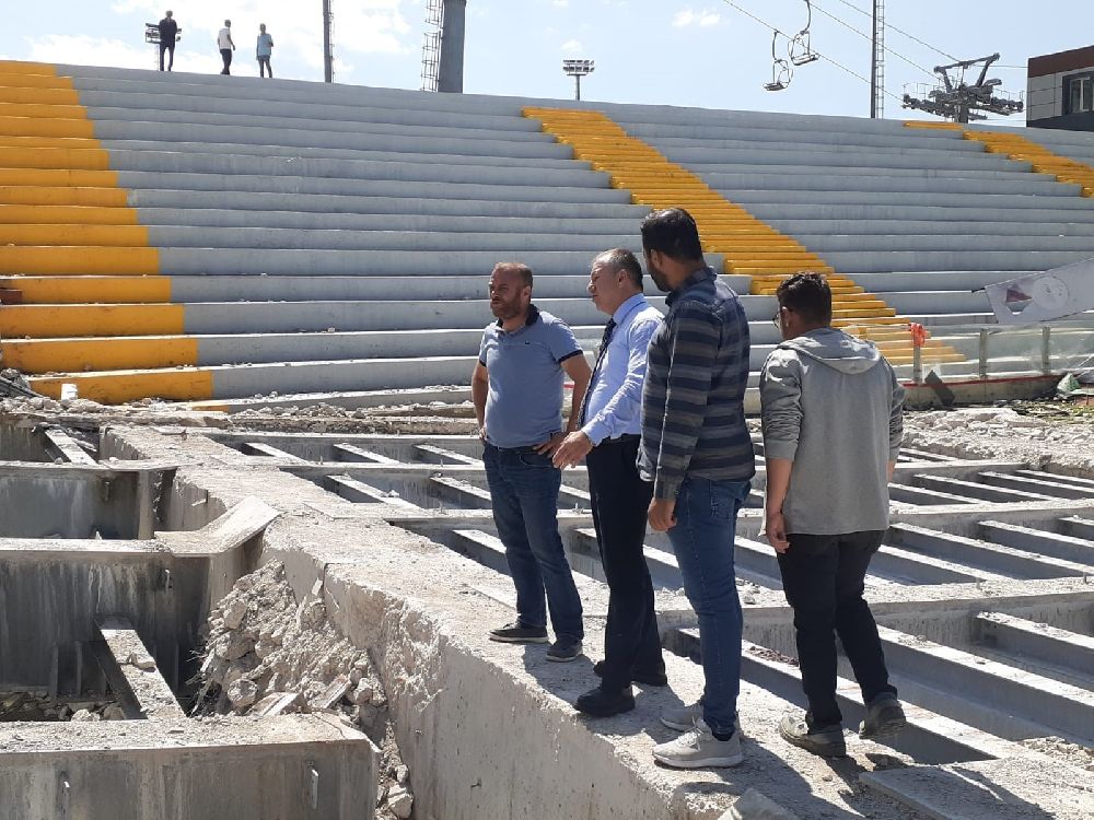 Kayakla Atlama Kuleleri’nde zemin tadilatı sonrası ahşap pist çalışmaları tüm hızla sürüyor. Erzurum Gençlik ve Spor İl Müdürü Levent Çakmur, çalışmaları yakından takip ediyor.