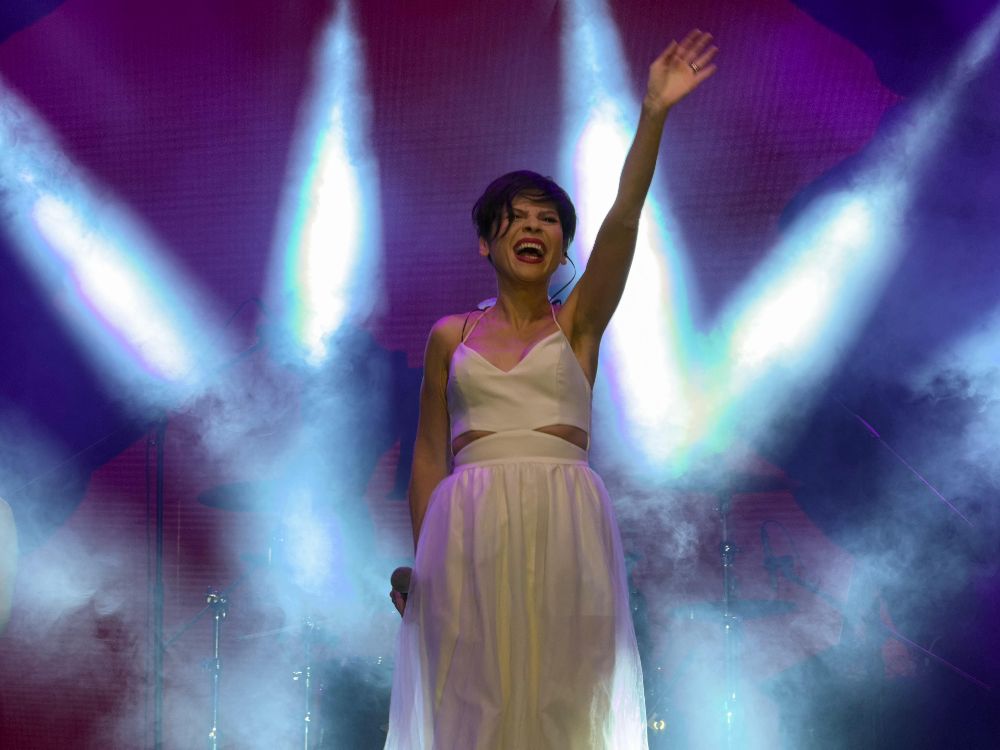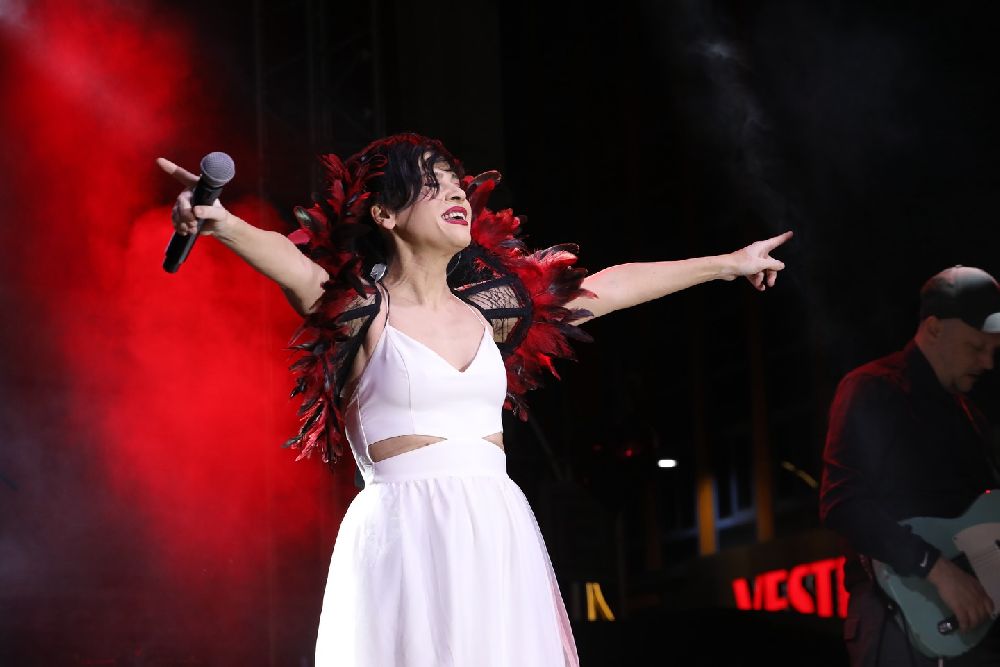 Aydilge, konserinde sevilen şarkıları Bucak halkıyla birlikte seslendirdi.