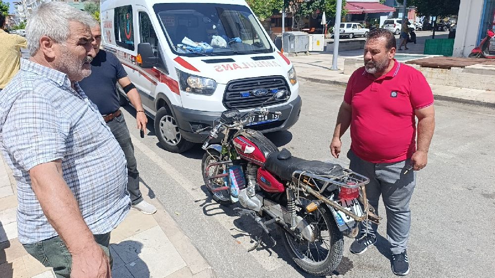 Antalya'nın Manavgat ilçesinde hafif ticari araç ile çarpışan ve durumunun iyi olduğunu söyleyerek hastaneye gitmek istemeyen motosiklet sürücüsünü yoldan geçen bir vatandaş tarafından ikna edilerek ambulansa bindirildi. Kaza anları ise güvenlik kamerasına yansıdı.