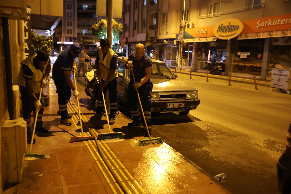 Caddeler, bulvarlar ve ortak kullanım alanları rutin programlar kapsamında düzenli olarak temizleniyor. Aydınlıların tertemiz bir güne başlaması için mesai mefhumu gözetmeden sahada olan ekiplerin çalışmaları vatandaşlar tarafından da takdirle karşılanıyor.