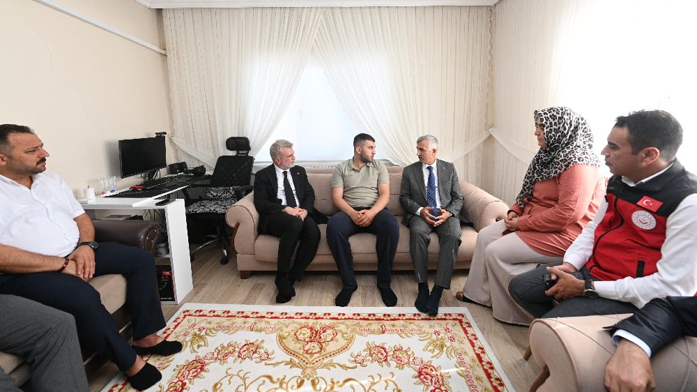 Kahramanmaraş Büyükşehir Belediye Başkanı Fırat Görgel, Pençe-Kilit Harekatı bölgesinde bölücü terör örgütü mensuplarınca kullanılan mağarada arama tarama faaliyeti sırasında metan gazından etkilenen Piyade Uzman Onbaşı Ahmet Can Yoksul’u evinde ziyaret etti.