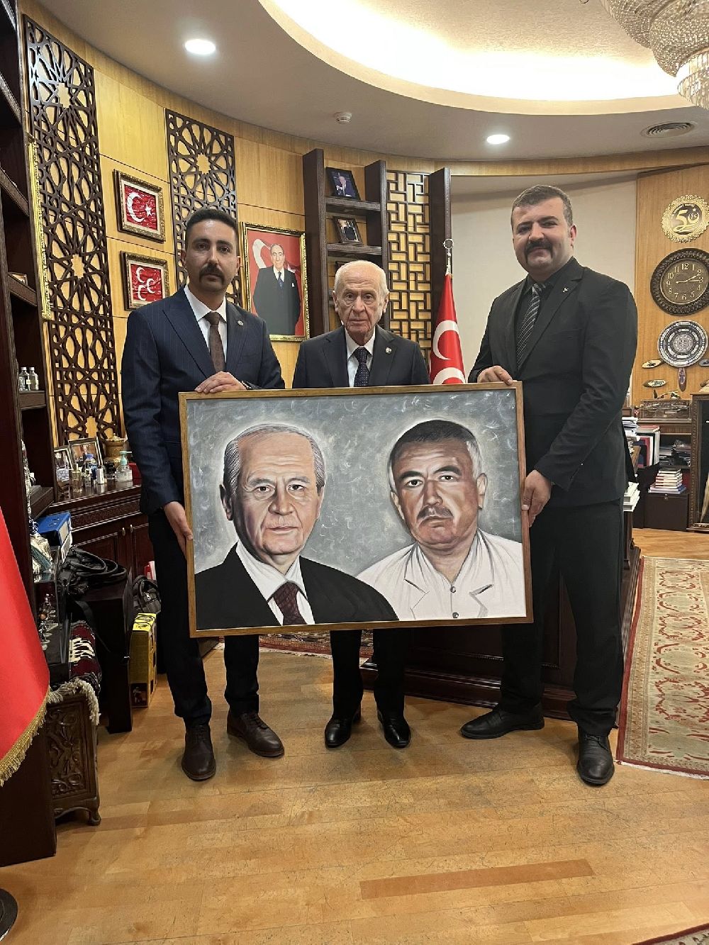 Milliyetçi Hareket Partisi (MHP) Bucak İlçe Başkanı İsmail Kahraman, beraberindeki heyetle birlikte MHP Genel Başkanı Devlet Bahçeli’yi makamında ziyaret ederek geçmişe uzanan anlamlı bir tabloyu da Bahçeli’ye hediye etti.