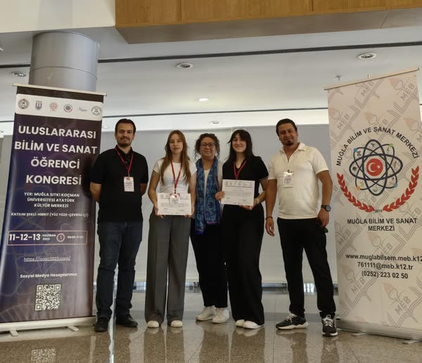 Berin Işıldak ve Selma Ceylin Talayman isimli öğrenciler, danışman öğretmenleri Dr. Güngör Kil eşliğinde Muğla’da düzenlenen Uluslararası Bilim ve Sanat Öğrenci Kongresi’ne katılarak kendi çalışmalarını başarıyla sundular.
