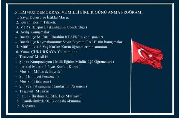 Bucak Kaymakamlığı’ndan 15 Temmuz Anma Programına Davet