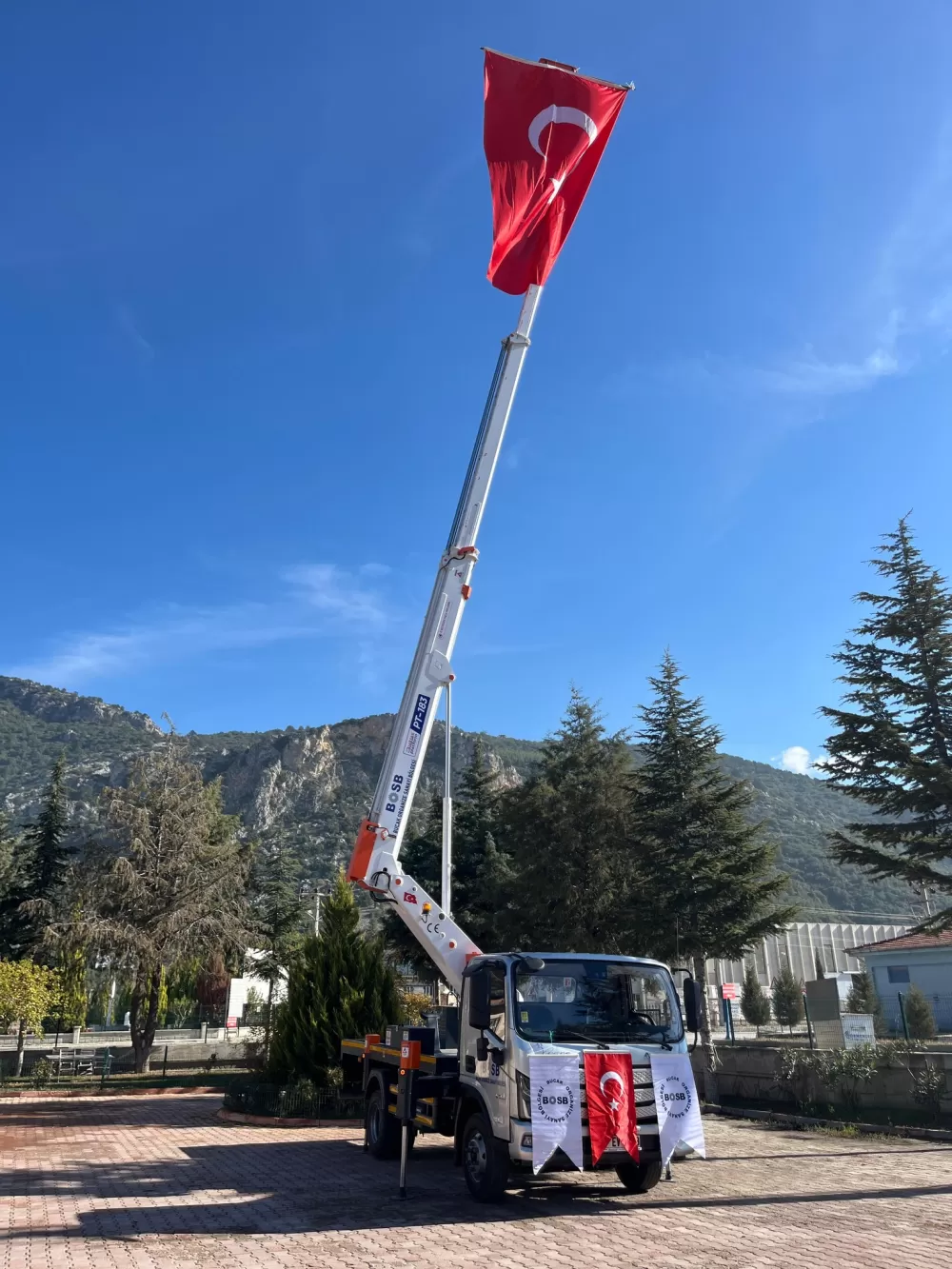Bucak OSB Yönetimi tarafından yapılan duyuruda, “Burdur Bucak Organize Sanayi Bölgesi olarak elektrik arıza bakım ve onarımlarında kullanılmak üzere platformlu aracımız bölgemize hayırlı olsun.” ifadeleri kullanıldı.