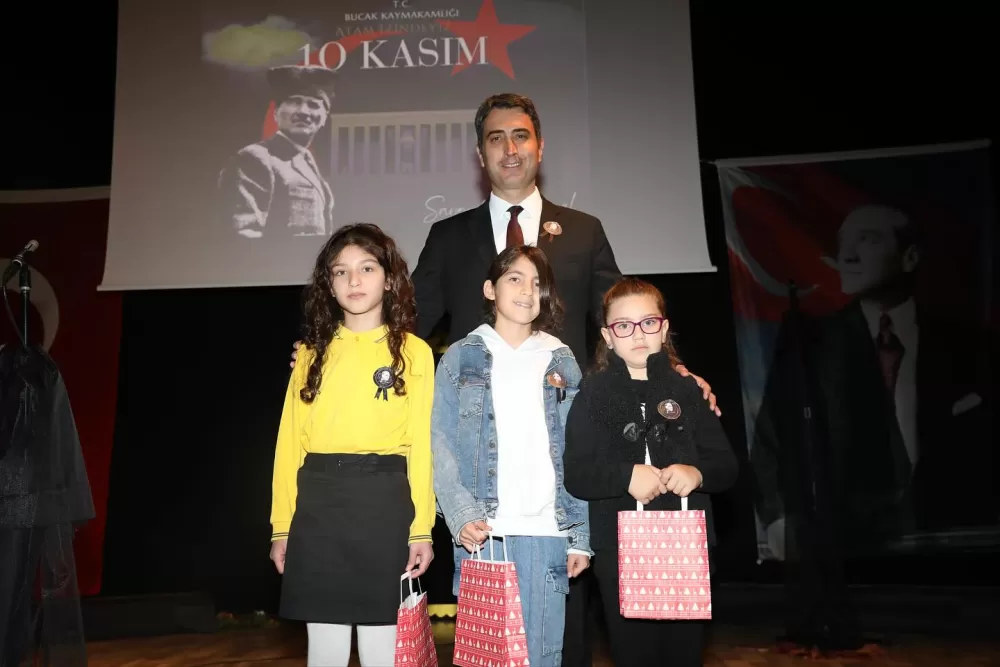 10 Kasım Atatürk’ü Anma Günü nedeniyle Bucak'ta düzenlenen yarışmada 1. olan Hüseyin Türker Ortaokulu öğrencisi Hatice Havva Avaz'ın şiirini okumasının ardından yarışmada 1. Olan Mehmet Cadıl Anadolu Lisesi öğrencisi Havva Beren Göral ise kompozisyonunu okudu.