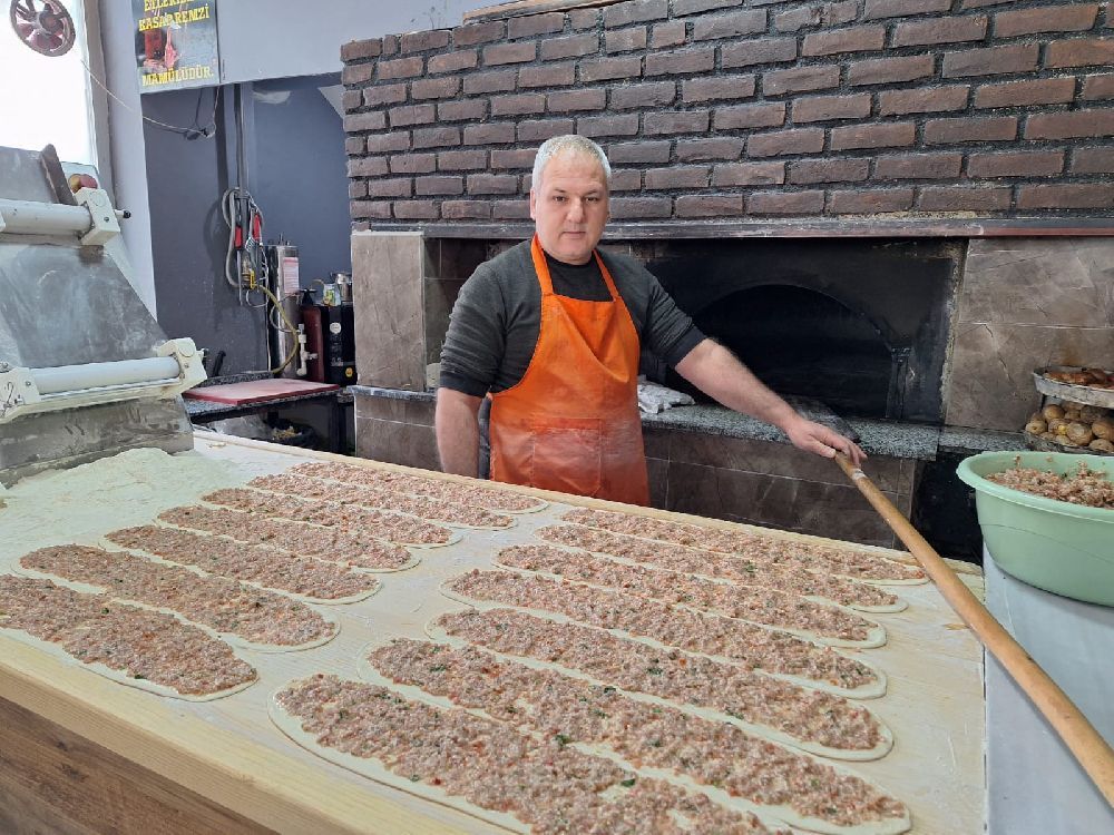 Geleneksel taş fırında pişen pideler, hafif yanık kenarları ve buram buram gelen hamur kokusuyla müşterileri mest ediyor.