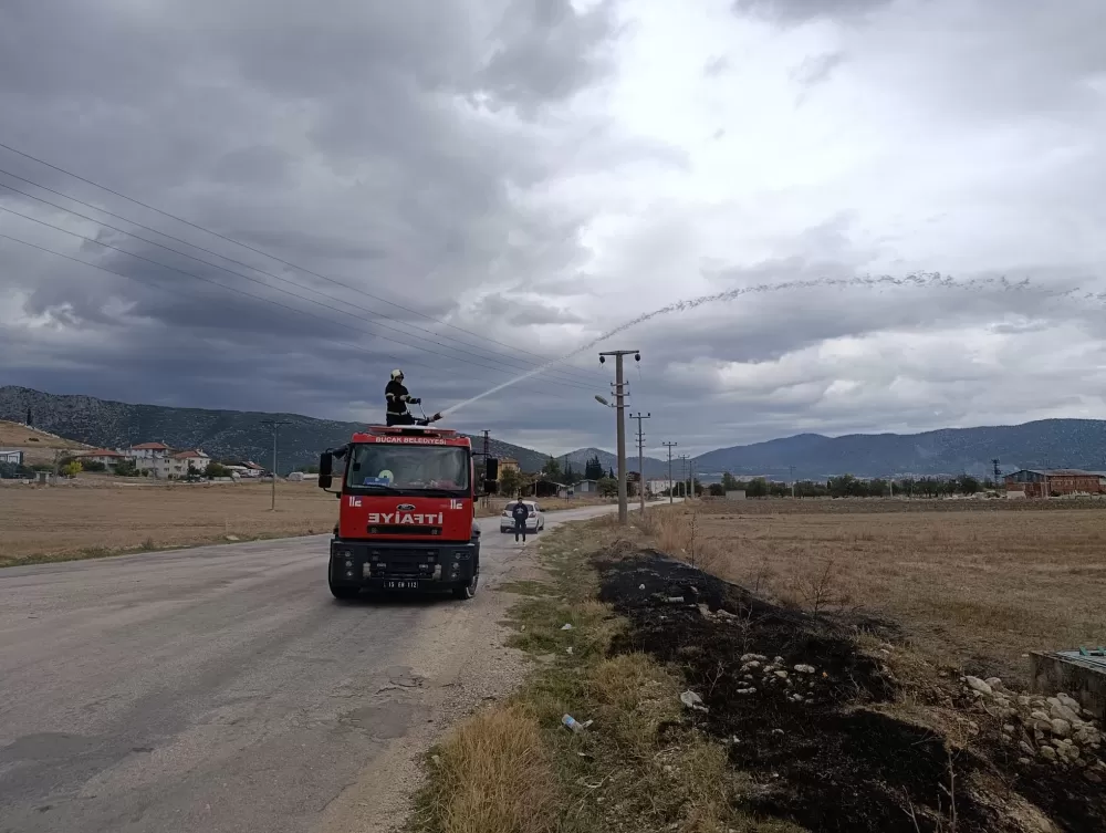 Yangın, Burdur'un Bucak ilçesi İncirhan Köyü'nde meydana geldi. Edinilen bilgiye göre, yol üzerinde bulunan bir arazide yangın çıktı. Alevleri gören vatandaşların ihbarı üzerine adrese itfaiye ekipleri sevk edildi. Yangın itfaiye ekipleri tarafından kontrol altına alınarak söndürüldü