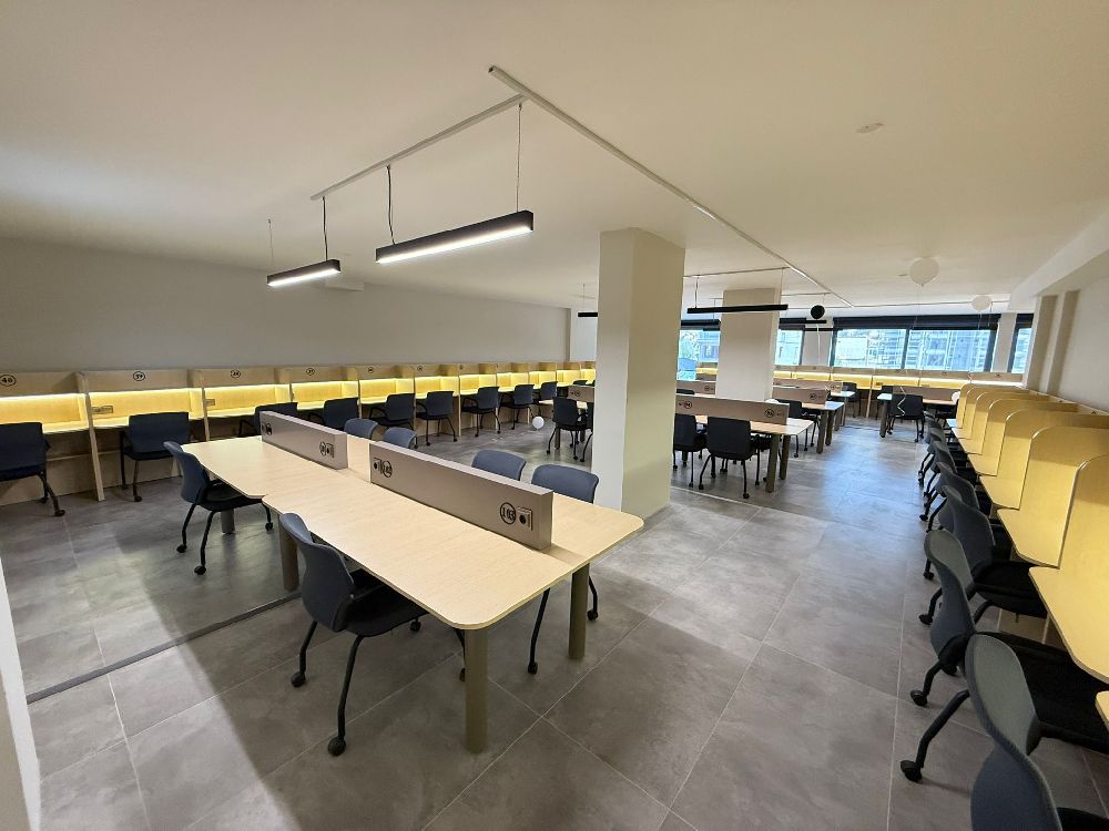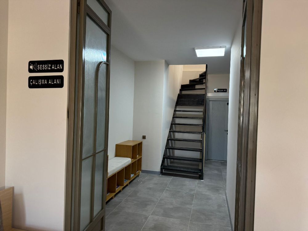 Sadece içerik değil, mekansal düzenlemeleri de dikkat çeken BG Akademi ve Koçluk, üst katta öğrenciler için sessiz, sade ama işlevsel bir çalışma ortamı oluşturdu. Sandalyesinden masa yerleşimine, aydınlatmasından hava sirkülasyonuna kadar her detay öğrencinin konforu düşünülerek tasarlanmış.