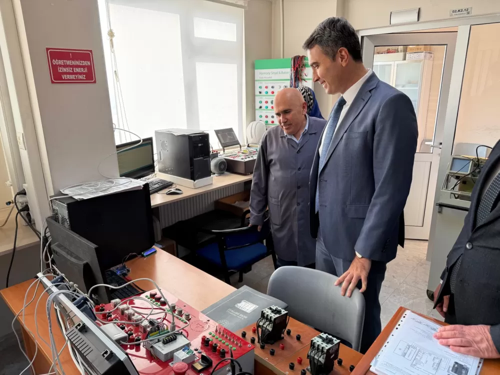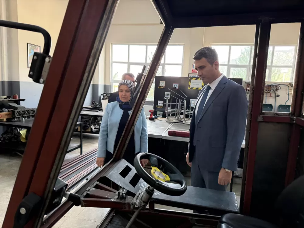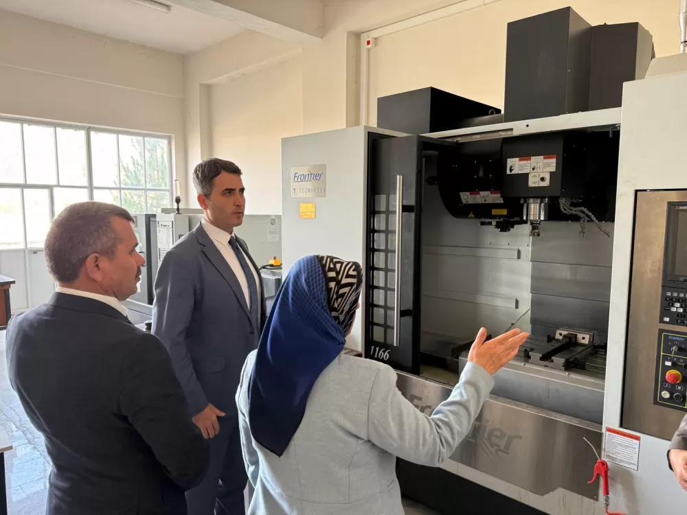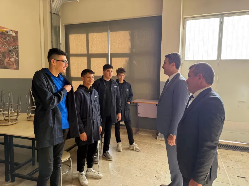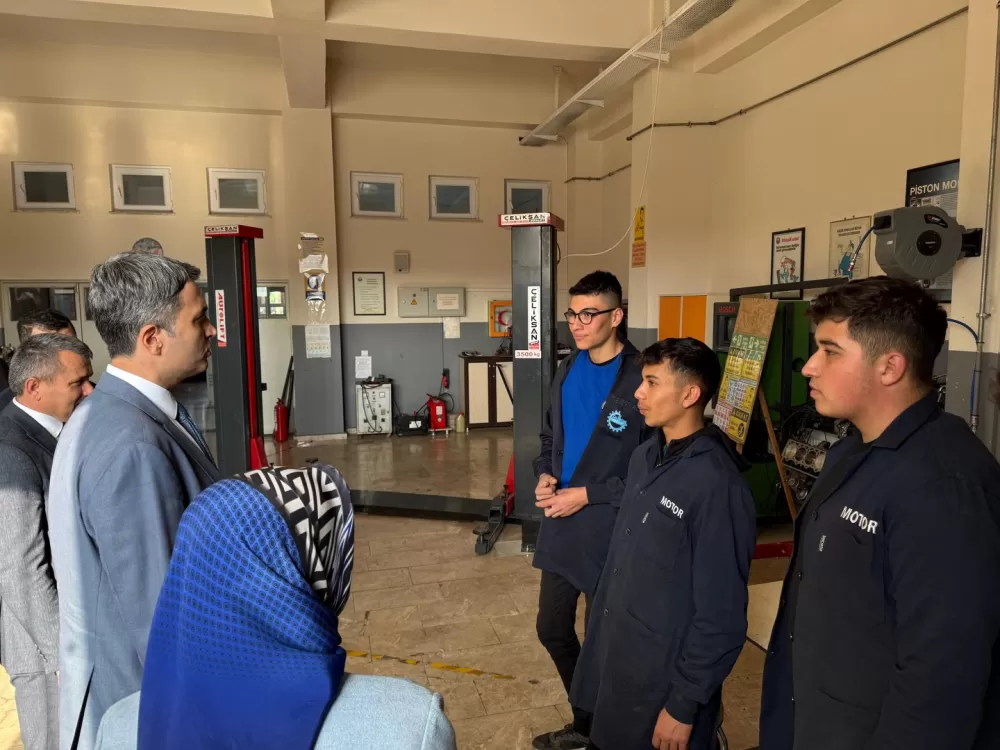 Ziyaret sırasında Kaymakam Kuruca’ya İlçe Milli Eğitim Müdürü Bekir Canavar eşlik ederken, atölyelerde eğitim gören öğrencilerle kısa sohbet gerçekleştirdiler. Öğrencilere eğitim süreçlerine ilişkin düşüncelerini sorarak başarı dileklerini ileten Kuruca, görüşme esnasında öğrencilerin uygulamalı derslerdeki çalışma ortamları da yakından değerlendirdi.