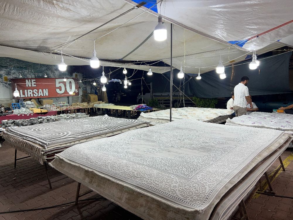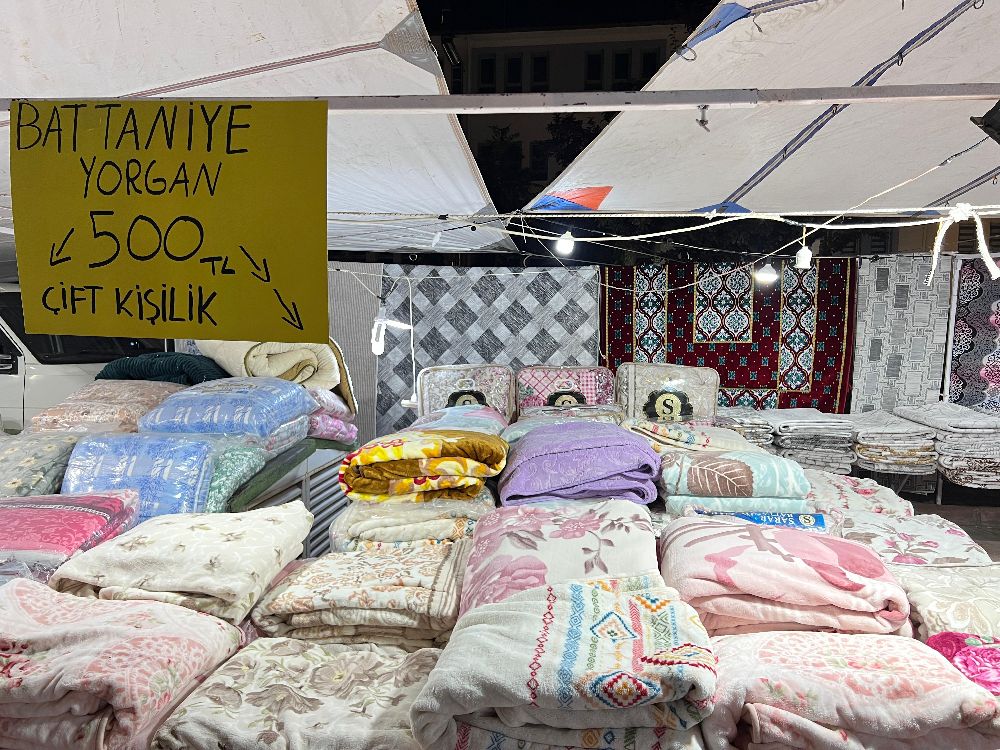 Festivalde sadece gıda ve giyim değil, ev tekstili ürünleri de büyük ilgi görüyor.