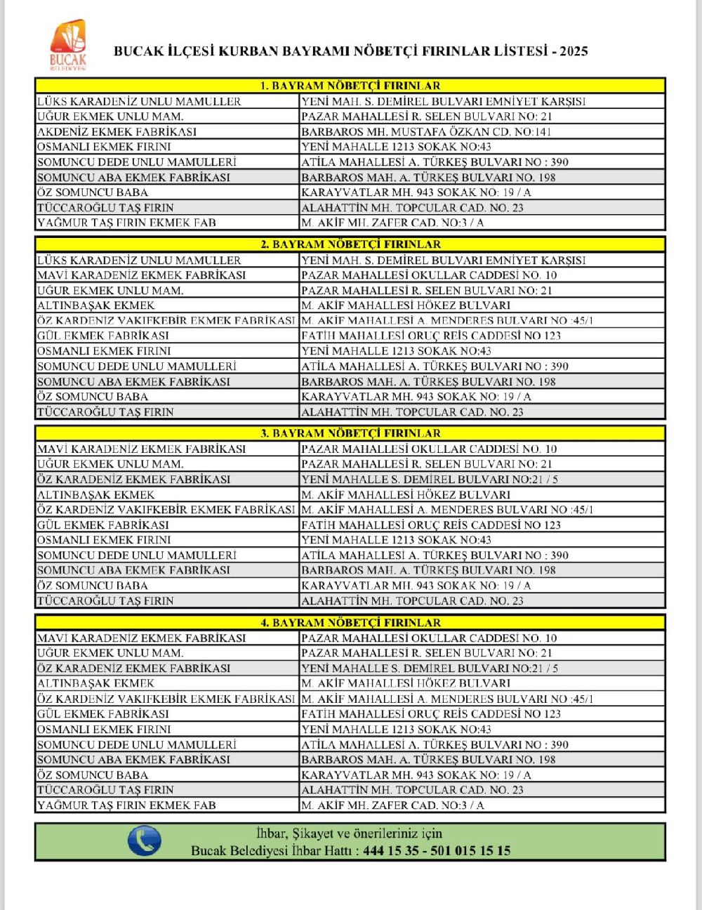 Burdur Bucak'ta Kurban Bayramı boyunca hangi fırınların açık olacağını merak ediyorsanız, doğru yerdesiniz! Bu yazıda, bayramın her günü için nöbetçi fırınların listesini bulabilirsiniz.