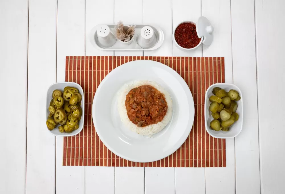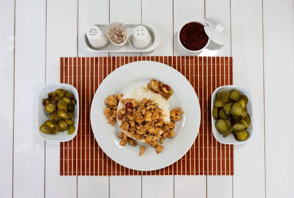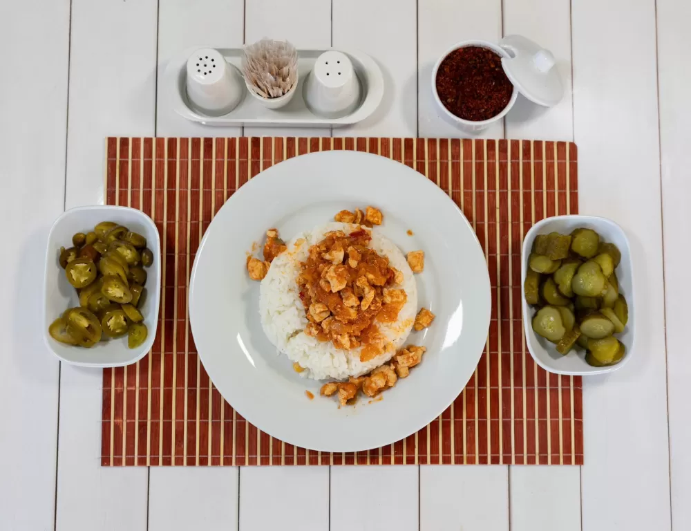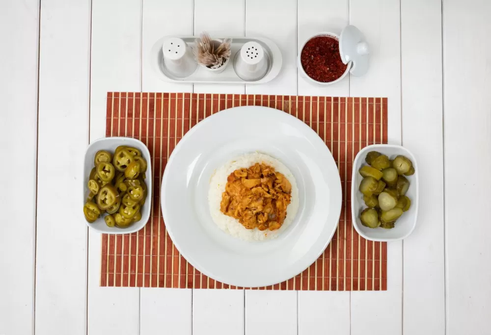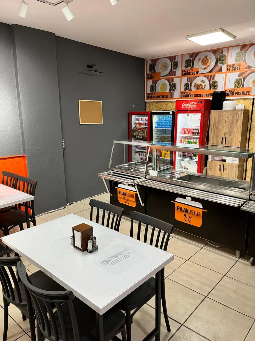 Yeni şubede pilav üstü kuru fasulye, pilav üstü et sote, köri soslu tavuk, barbekü soslu tavuk, tavuk döner ve tavuk sote gibi ürünlerin yer aldığı menü sunuluyor.